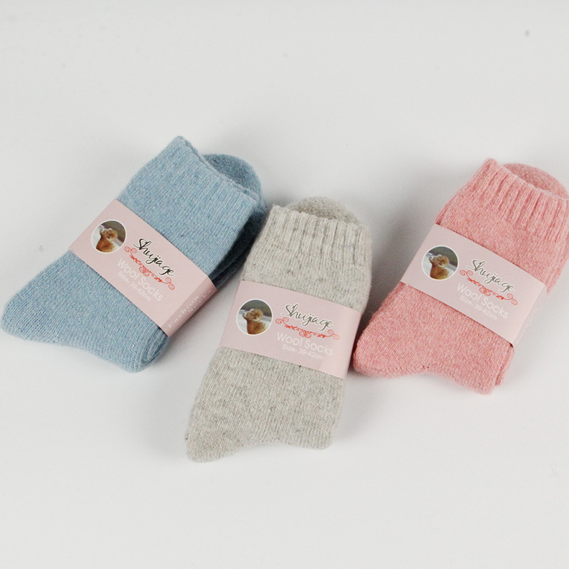 Autumn and winter new ladies rabbit wool socks women's tube socks Terry thick socks warm solid color pull socks