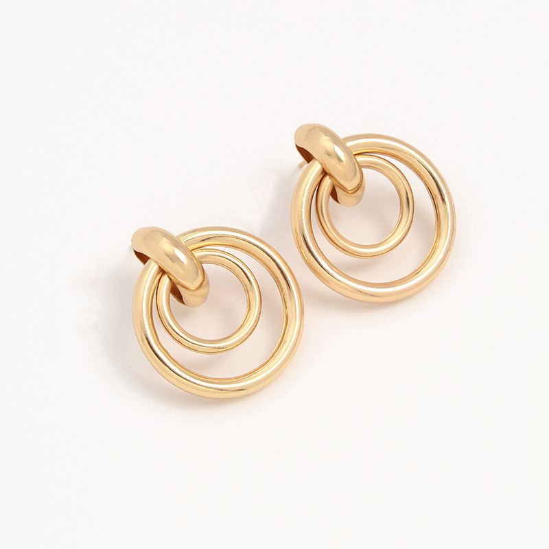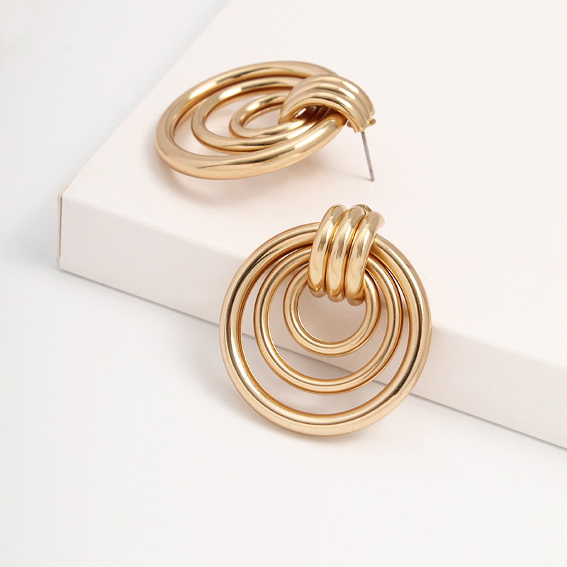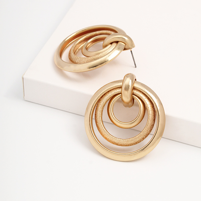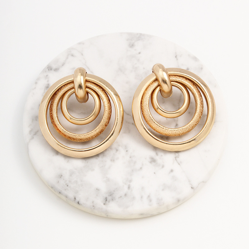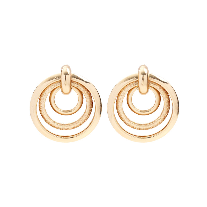 Frosted Gold Ring-Shaped Round Hole Design Love Earrings