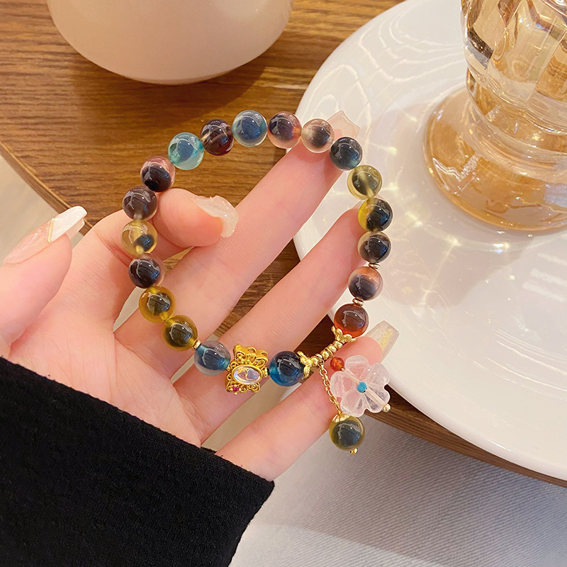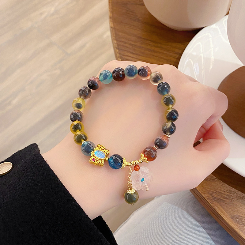 Color: 8mm colorful sugar heart agate pink crystal flowers