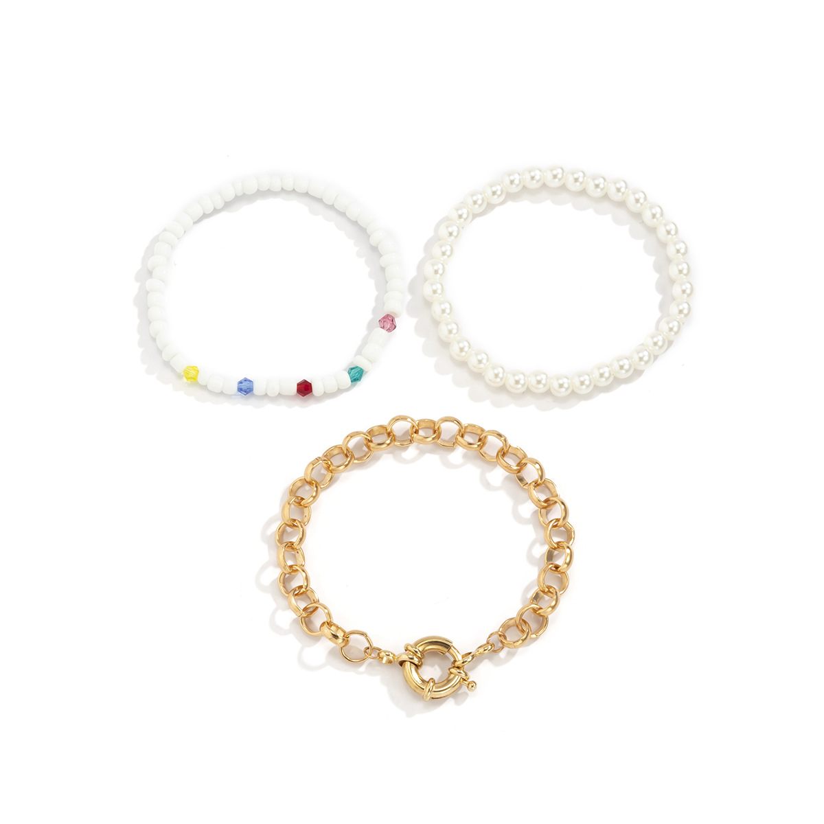 Retro Contrast Color Beaded Chain Stacked Bracelet