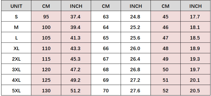 Size: small, medium, large, 2XL, 3XL, 4XL, 5XL