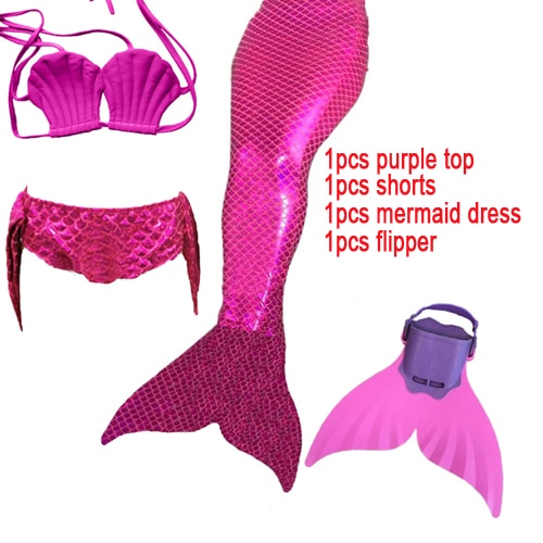 Package:1pcs Top + 1pcs Shorts + 1pcs Mermaid Tail Dress + 1pcs Monofin