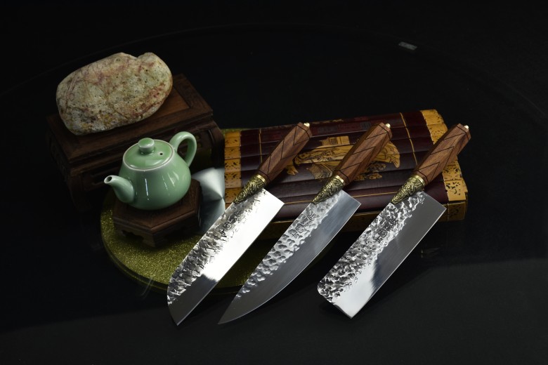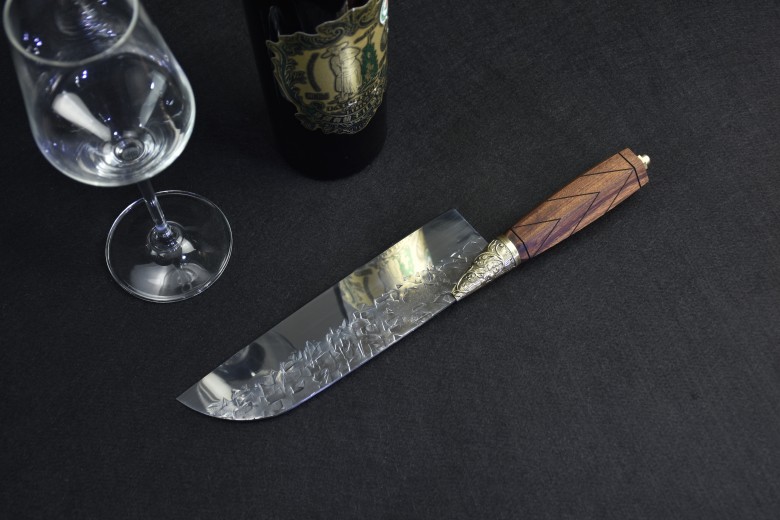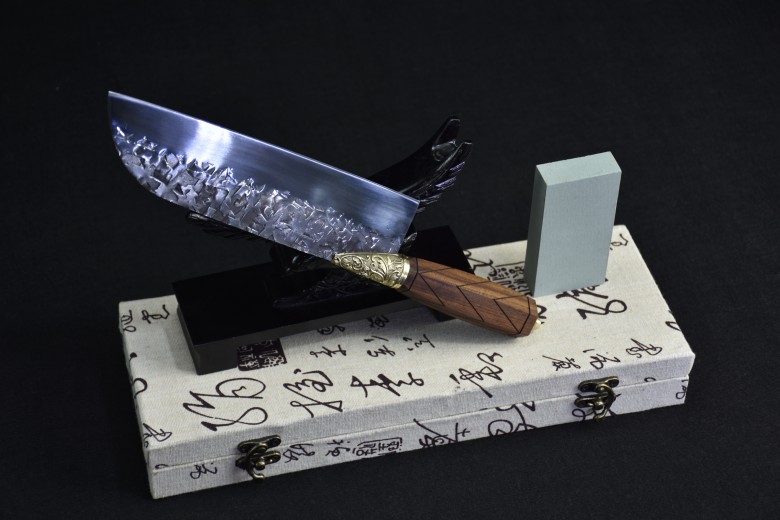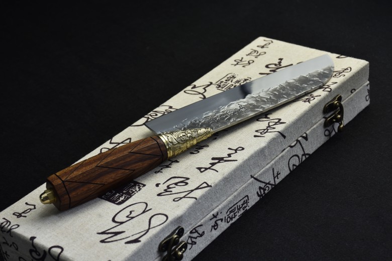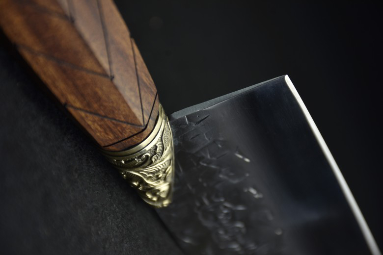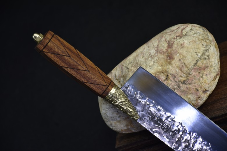 Full length: 32cm Blade length: 20.5cmHandle length: 11cm Blade width: 5.5cmThickness: 0.25cm Blade material: 7Cr17MovHandle material: rosewoodNet weight: 0.25kg