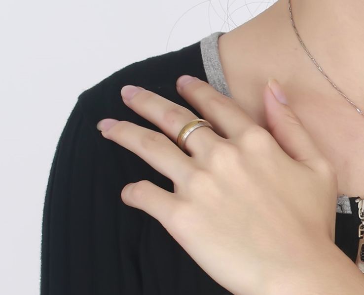 Diamond inlaid titanium steel couple ring