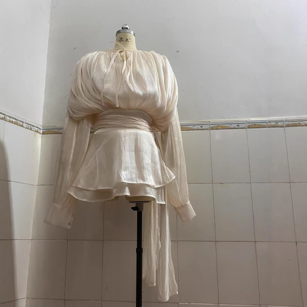 Product information: Pattern: solid color Color: Apricot Sleeve type: puff sleeve Pants length: Shorts Main fabric composition: Polyester Size: S,M,L,XL Applicable Gender: Female Sleeve length: long sleeve
