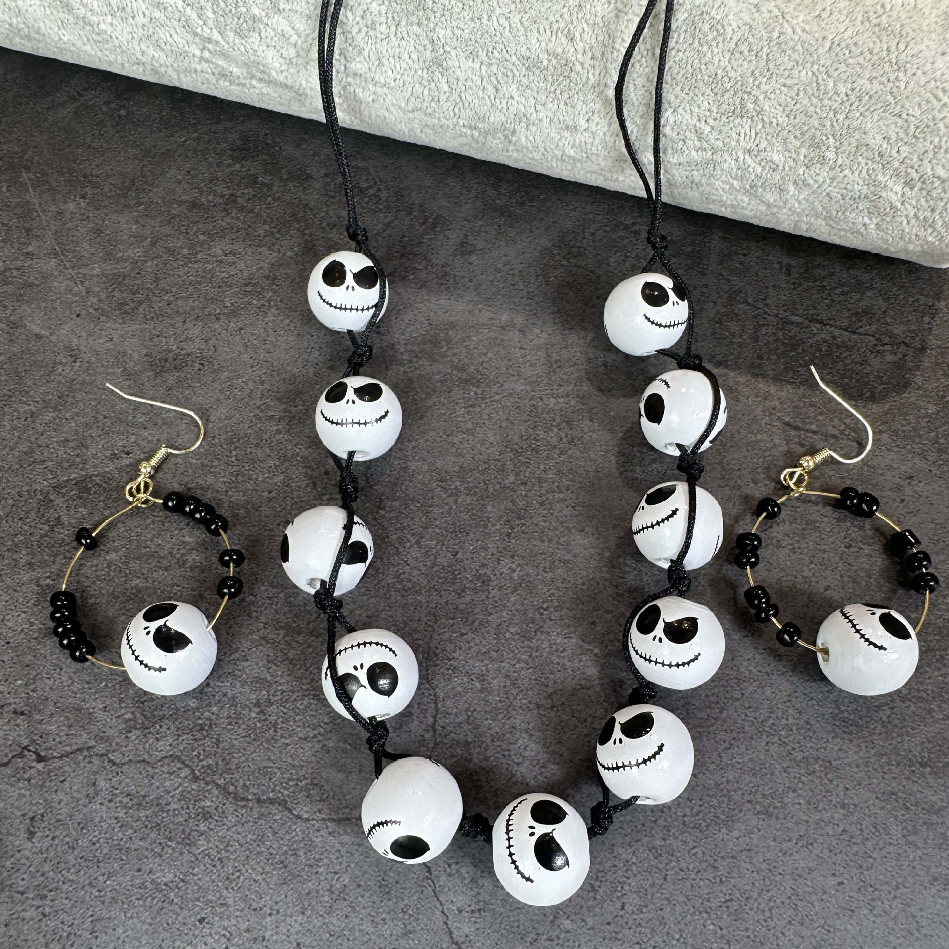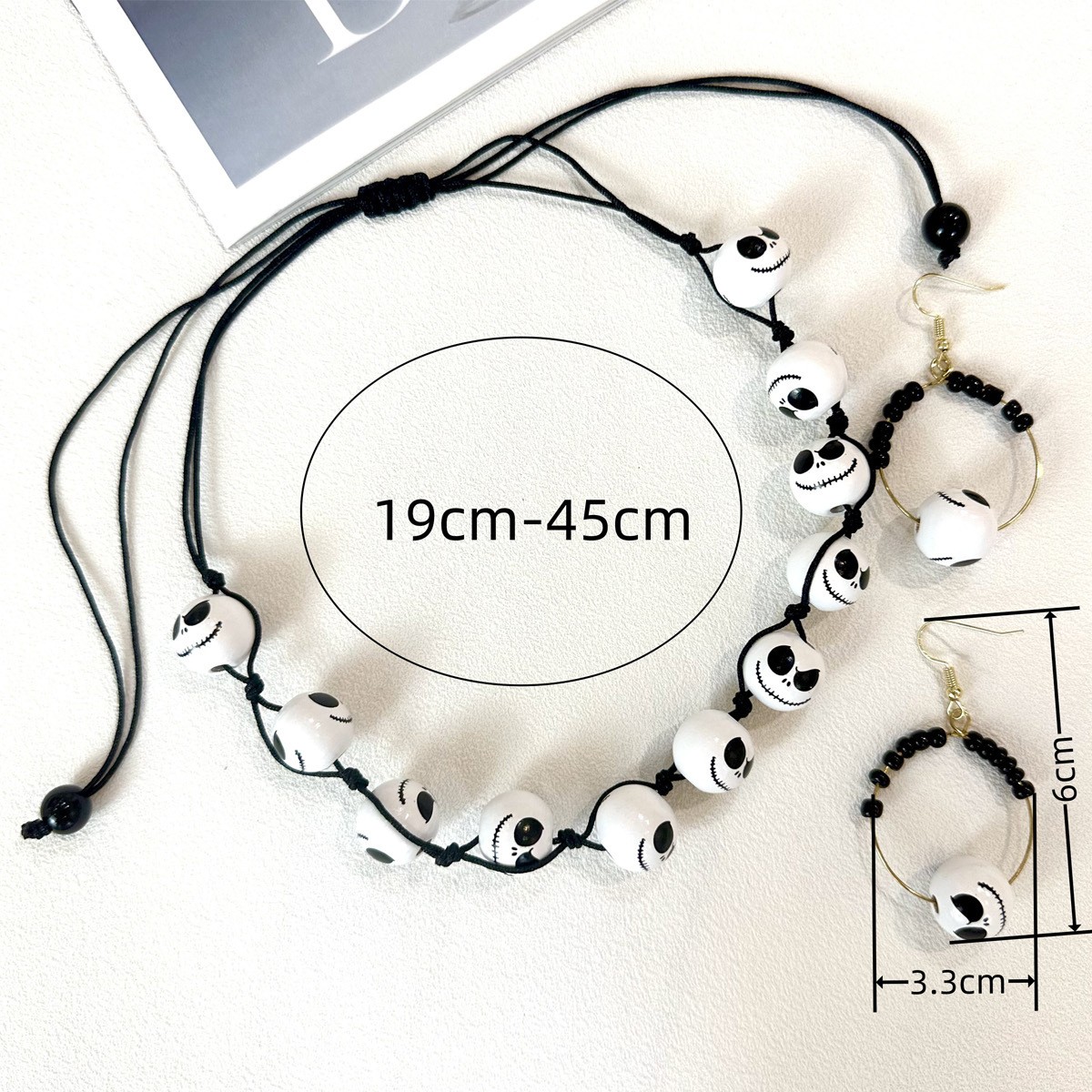 Product information:Processing Technology: manual Color: Ghost Face earrings, ghost face bracelet, ghost face necklace Material: Wooden Popular elements: pumpkin skull Style: Exaggerated