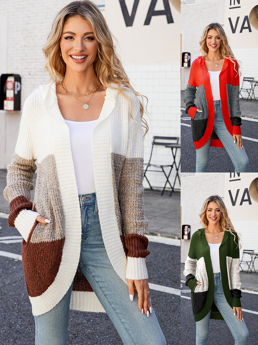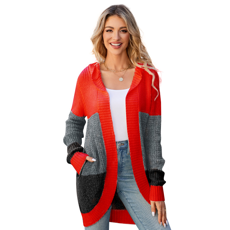 Color: green sweater coat, orange red sweater coat, white sweater coat