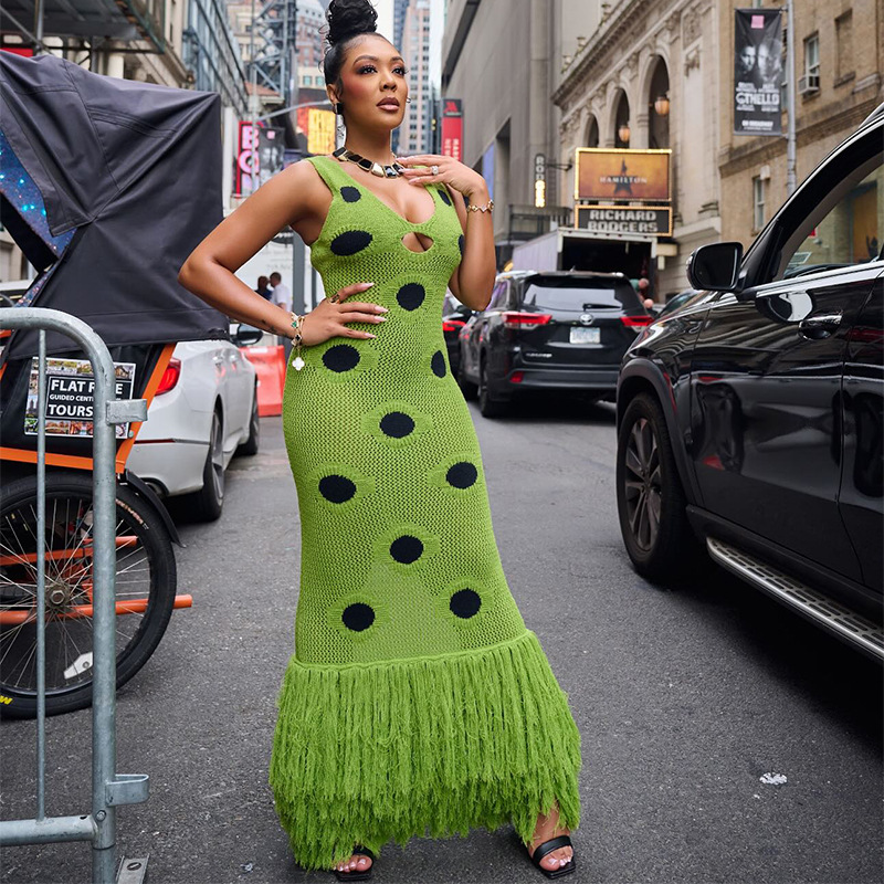 Product information:Color: knitted dressSize: S,M,LStyle type: Street hipsterPopular elements: hollow outStyle: Sling styleFabric name: knittedMain fabric composition: PolyesterStyle: European and American style