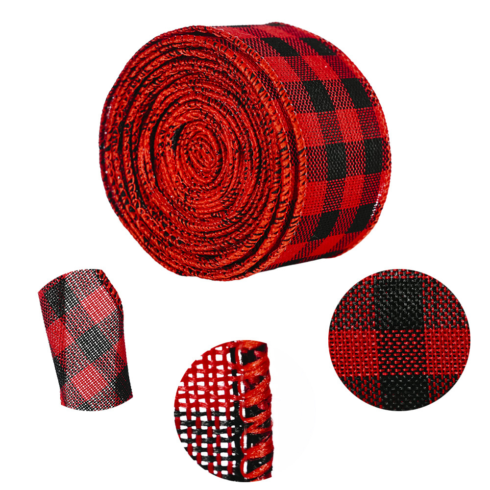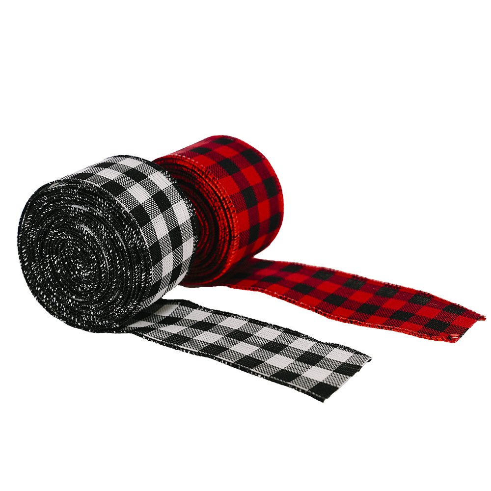 Product information:Material: FabricCategory: Christmas RibbonProcess: MechanicalSpecifications: Red and black lattice ribbon (6 meters per roll), black and white lattice ribbon (6 meters per roll)Packing list:Ribbon*1