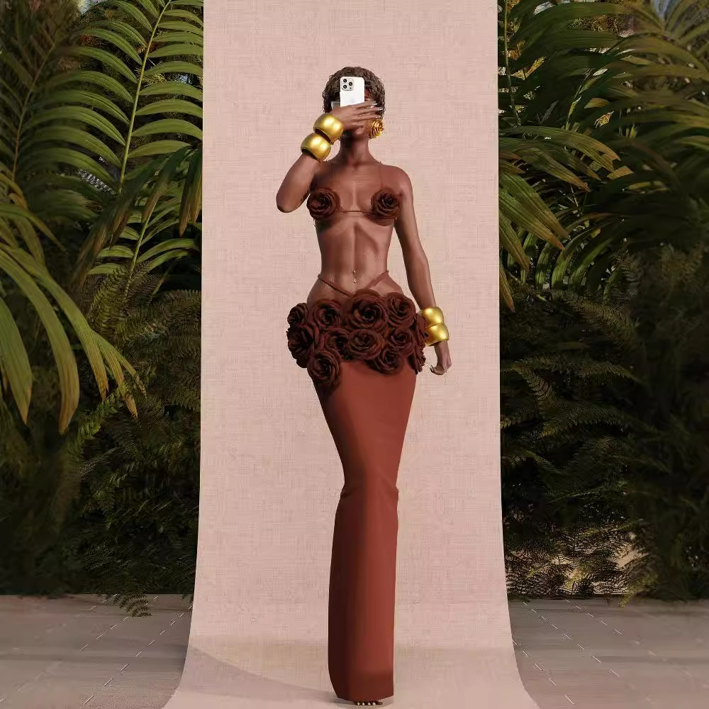 Women's Three-dimensional Flower Sheath Dress Two-piece Set