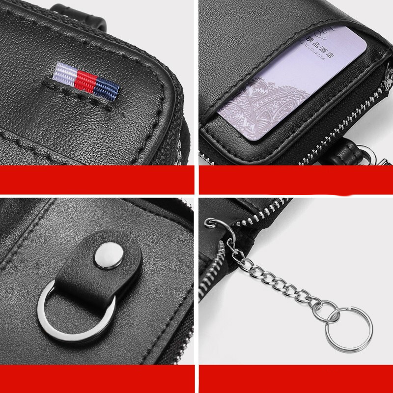 Men's Large-capacity Zipper Real Cowhide Card Case