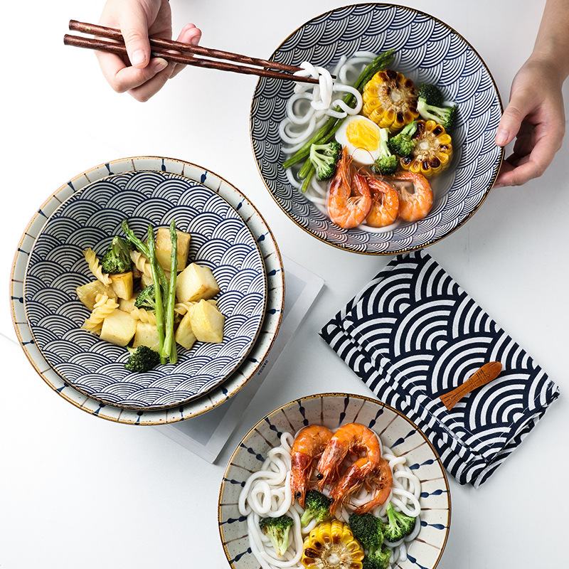Product Category: BowlMaterial: more than 45 percent bone meal and bone chinaColor: A Ukiyo-e—8 inches, A Ukiyo-e—9 inches, B double line—8 inches, B double line—9 inches