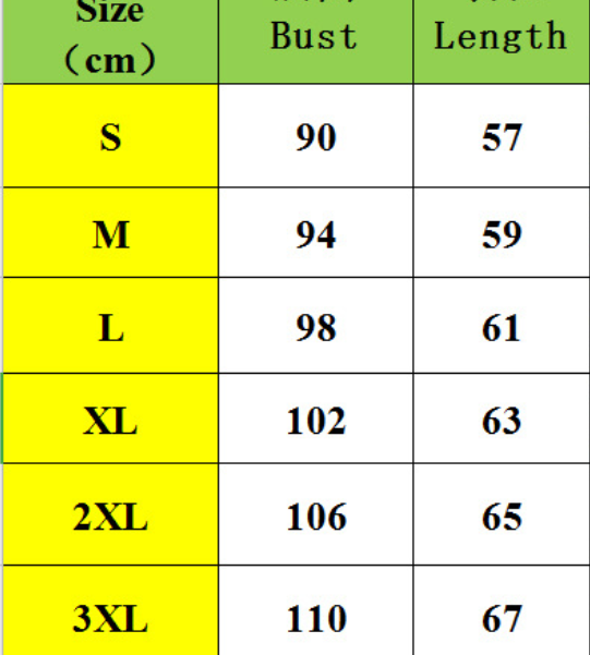 Size:S,M,L,XL,2XL,3XL unit:cm