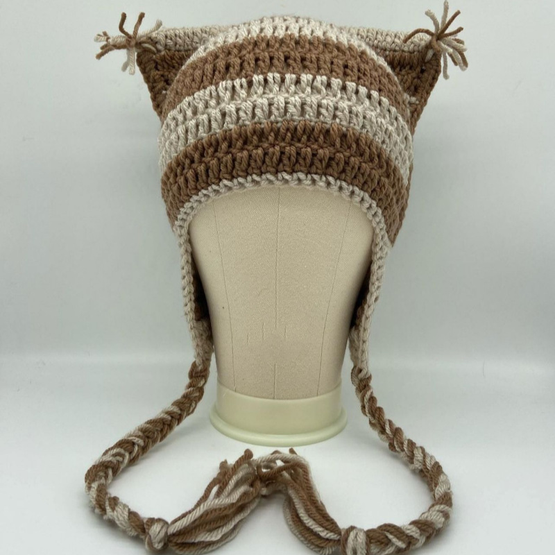 Hand knitted Cat's ears (Steamed cat-ear shaped bread) hat*1