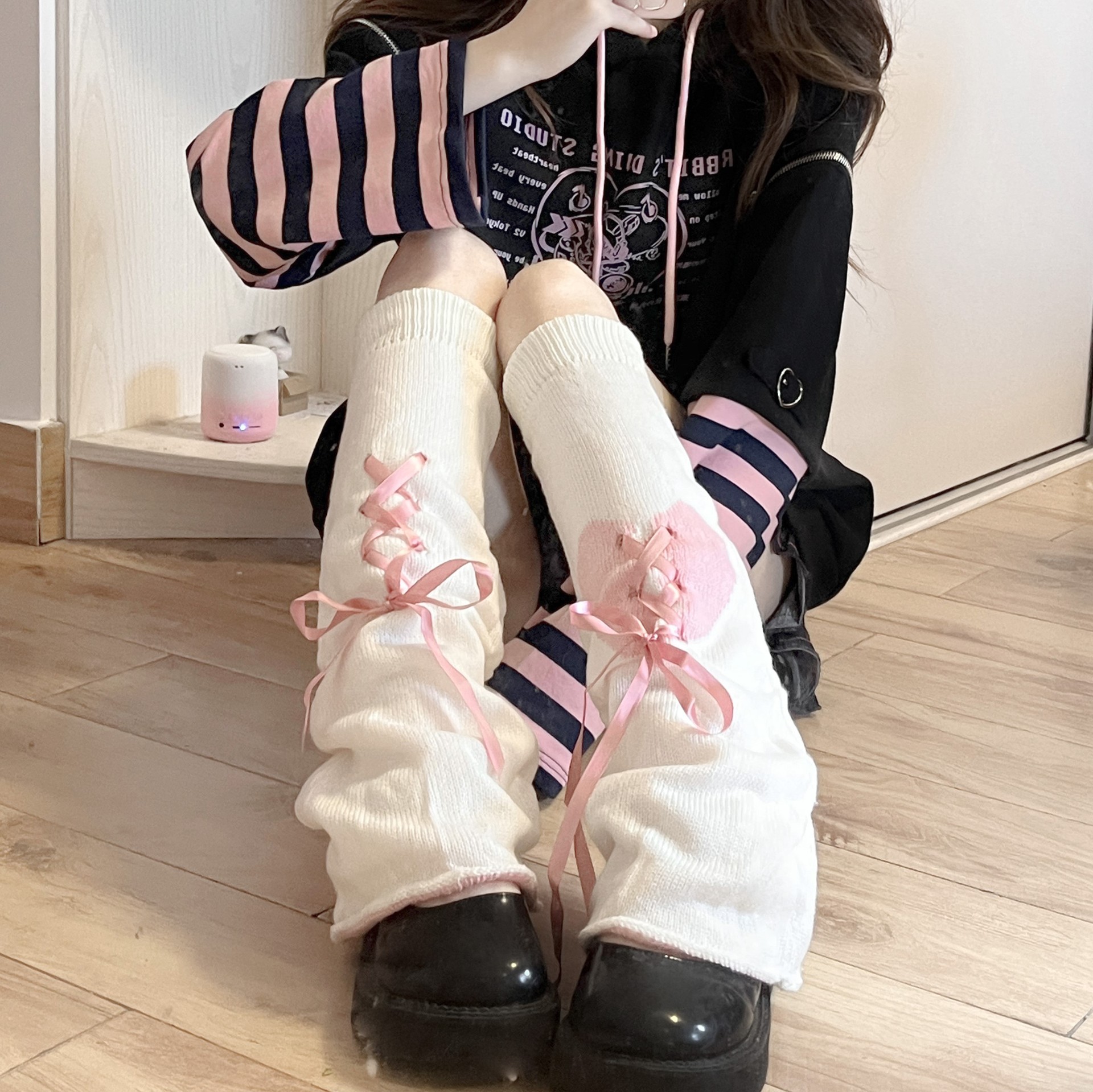 Color: light pink foot socks, black pink foot socks, black and white foot socks, white love cross foot socks, Milky White ribbon foot socks