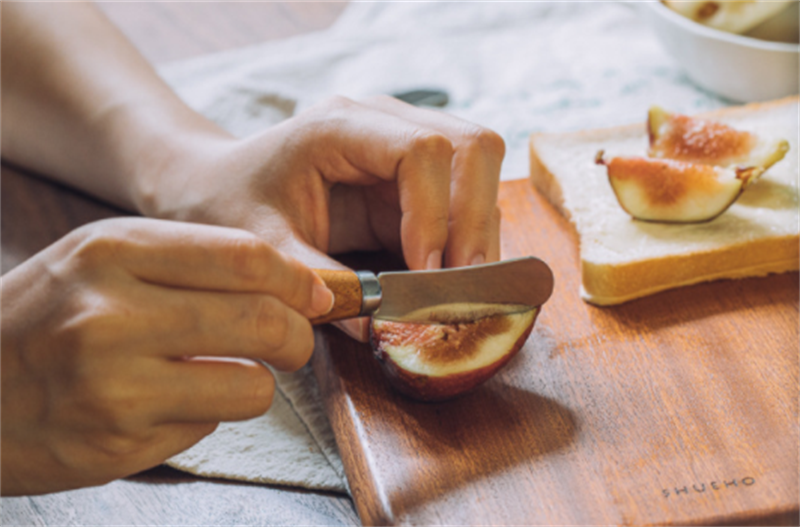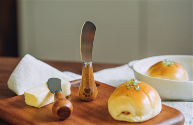 The stainless steel blade is bright and textured, the curved design is round and lovely, the wooden handle is comfortable to touch, simple and lovely