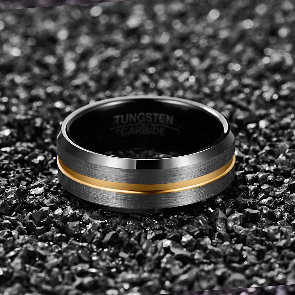 Men's Gold Channel Steel Color Frosted Tungsten Steel Ring