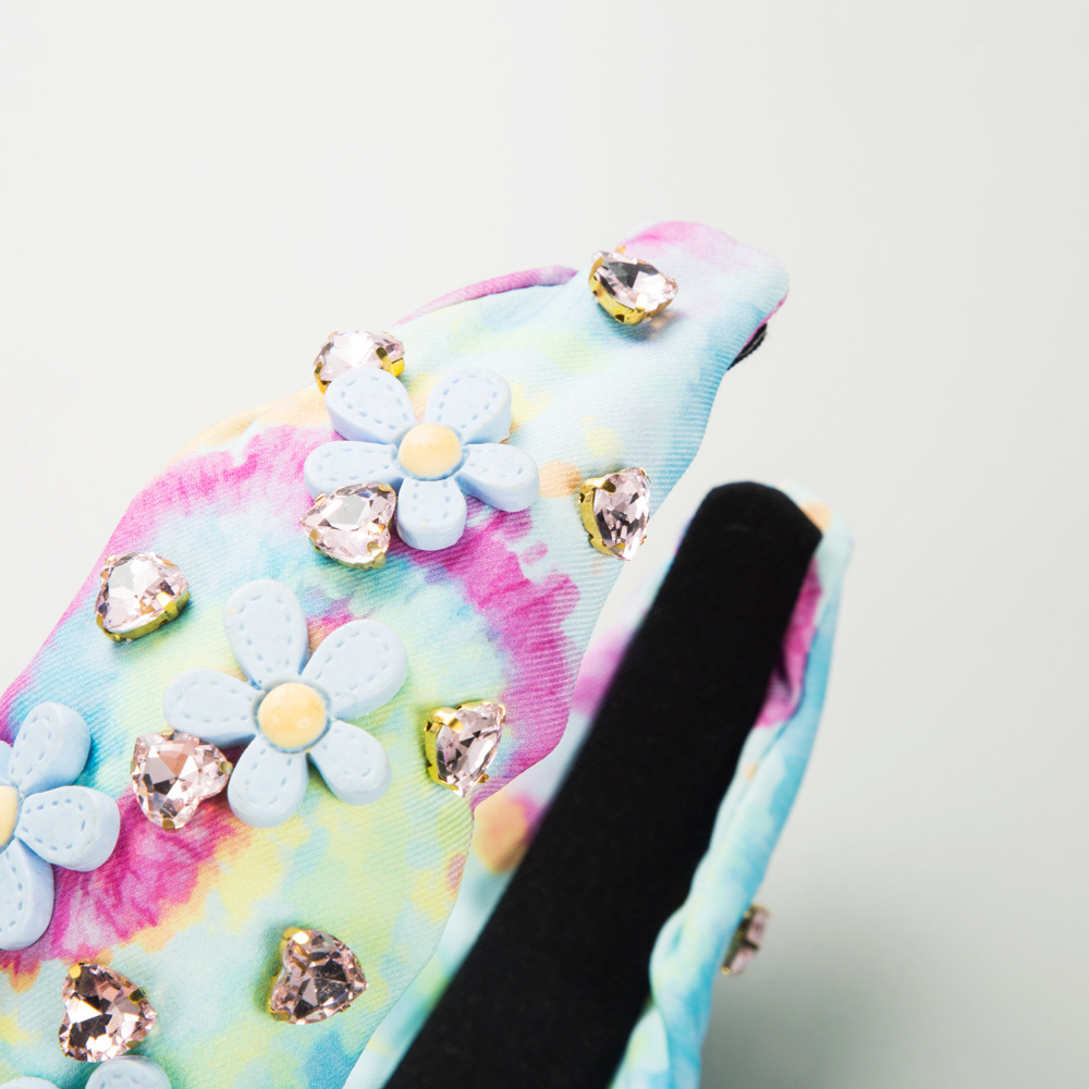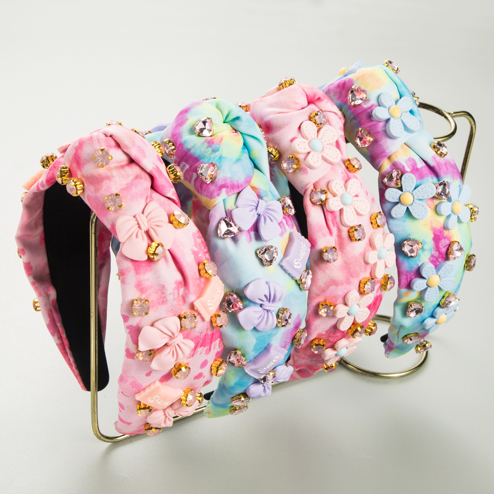 Product information:Treatment Process: DiamondColor: pink floral, blue flower, pink bow, purple bowApplicable people: womenShape: hair bandPopular elements: Bow, cube sugar, love/heart-shapedStyle: Cute