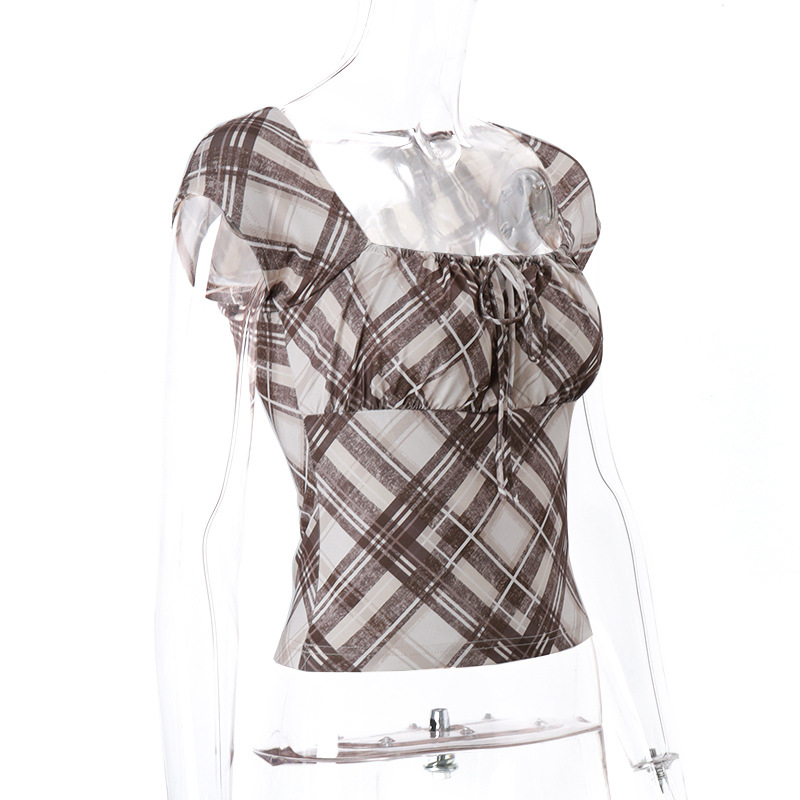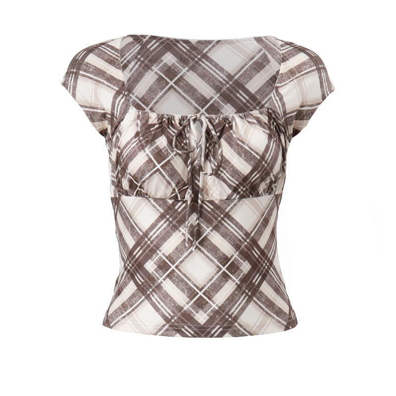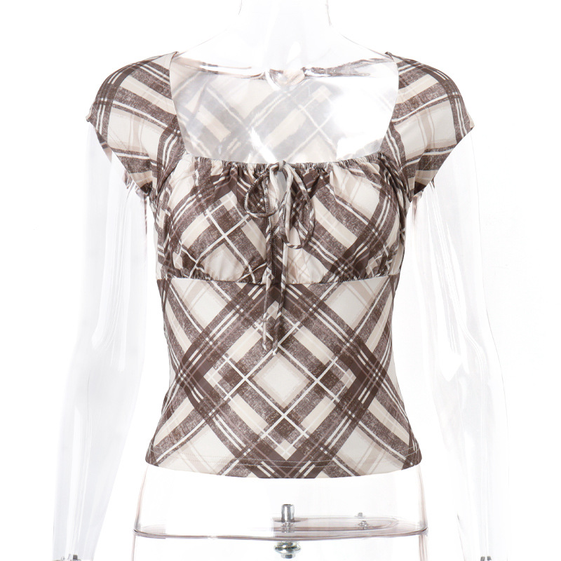 Product information: Pattern: Plaid Color: Brown Size: S,M,L Style type: Street hipster Popular elements: lace-up Style: pullover Fabric name: Polyester Style: Street style Craft: collage/stitching