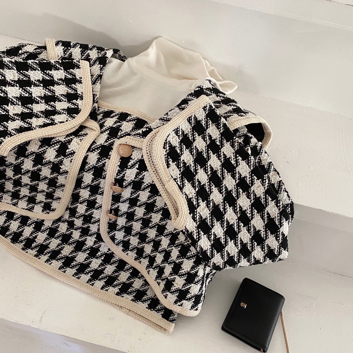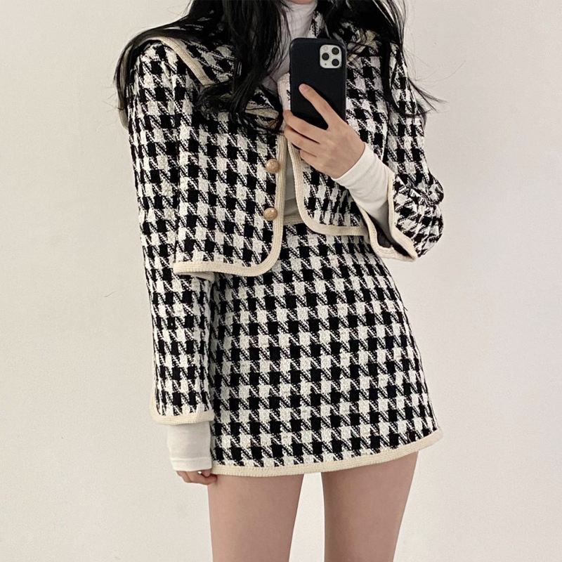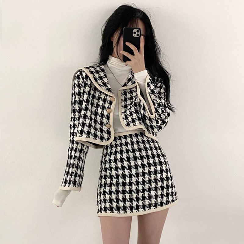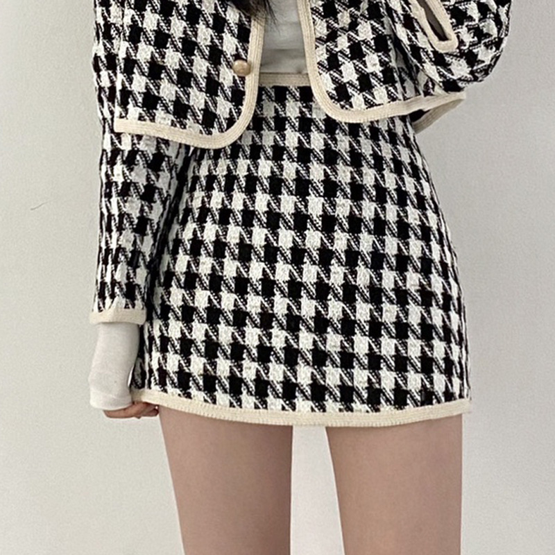 Color: plaid top, plaid skirt