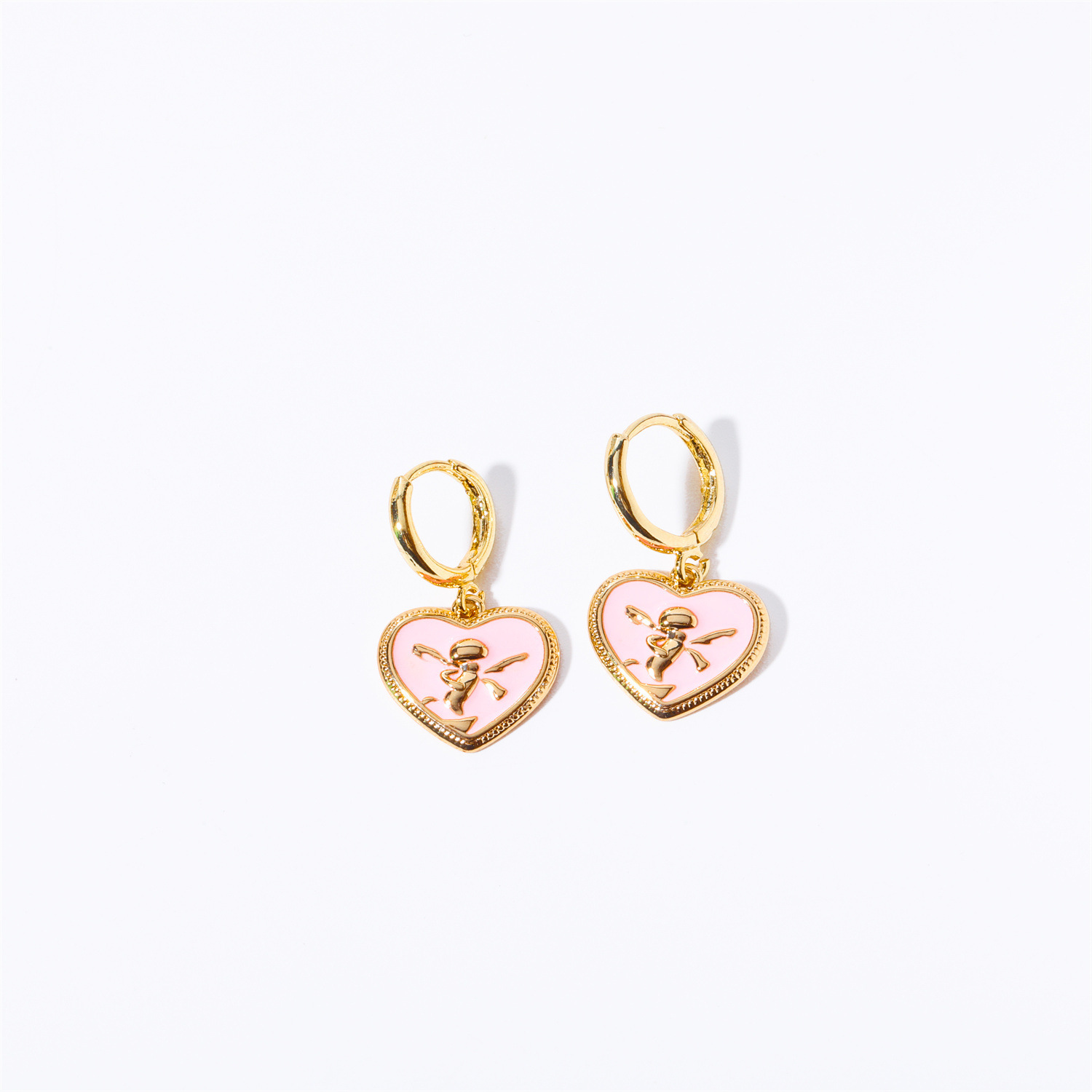 Product information:Treatment Process: dripping oilColor: Golden Angel earringsApplicable people: womenMaterial: CopperShape: heart shapePopular elements: Love/heartStyle: Retro