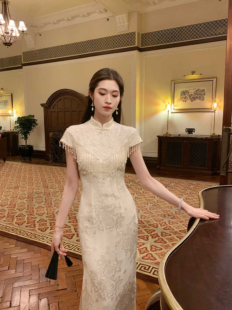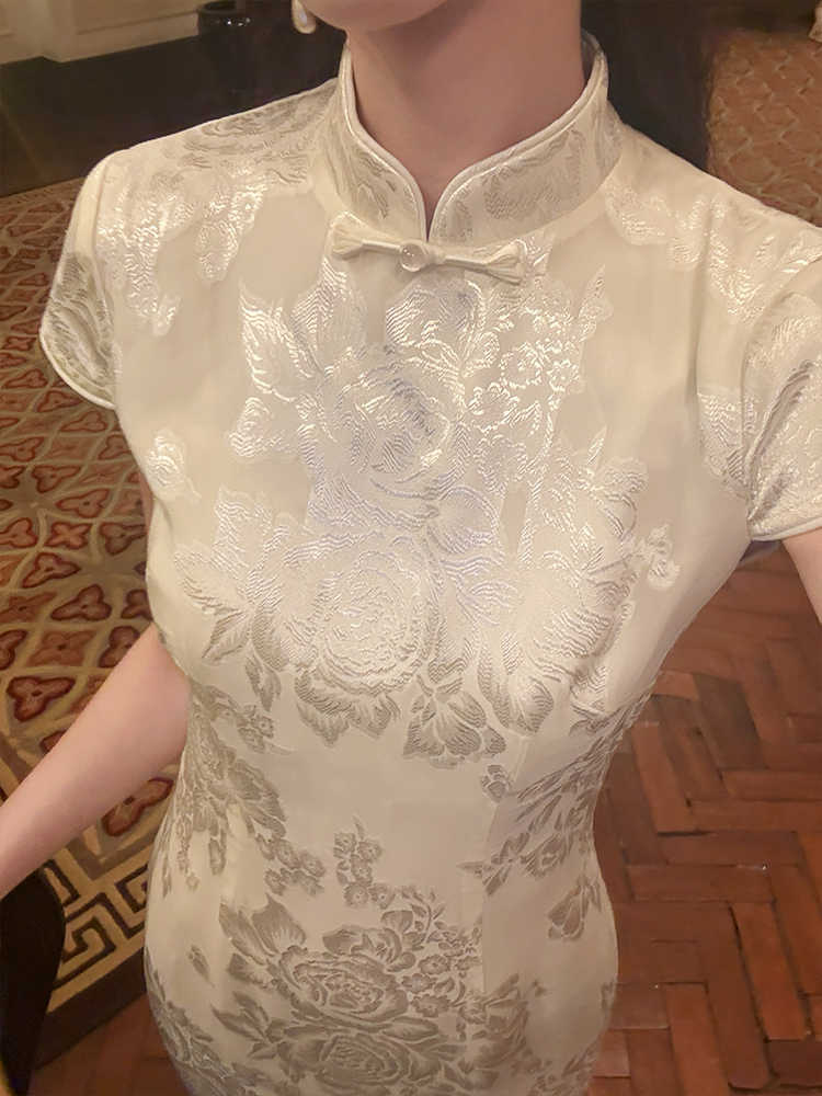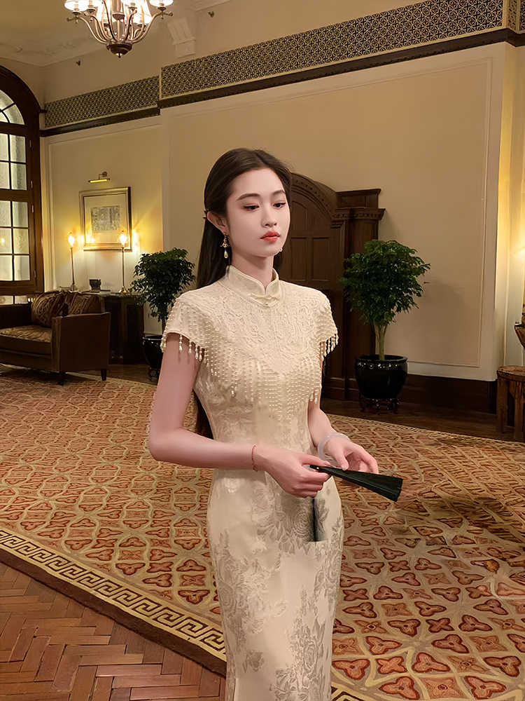 Color classification: pearl white cheongsam dress