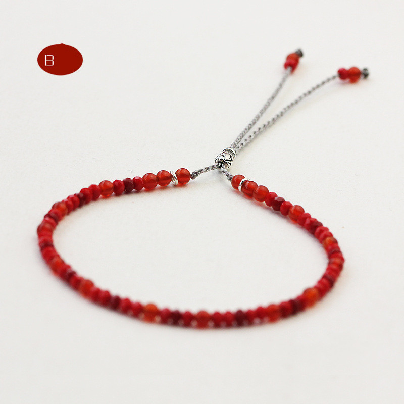 Spacification:Kind: BraceletStyle: UnisexRed agate diameter: Approximately 3mmMaterial: 925 sterling silver, red agate, finely crafted faceted crystal
