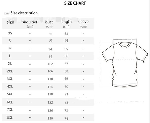 Size: XS,S,M,L,XL,2XL,3XL,4XL,5XL,6XL