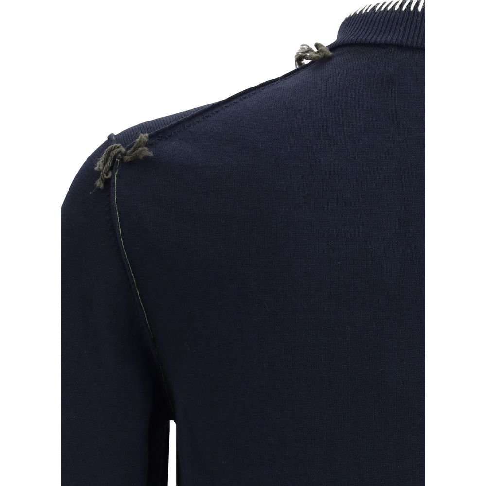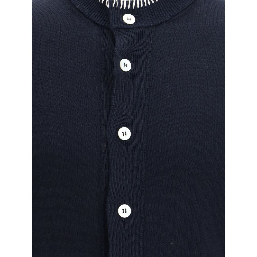 Namacheko’s cotton Cardigan reinterprets a wardrobe classic with refined details and a modern aesthetic. Featuring a front button closure, it features a ribbed crew neck embellished with contrast stitching that enhances its construction. Ribbed cuffs and hem complete the design for a clean, structured finish. An essential garment with attention to detail.