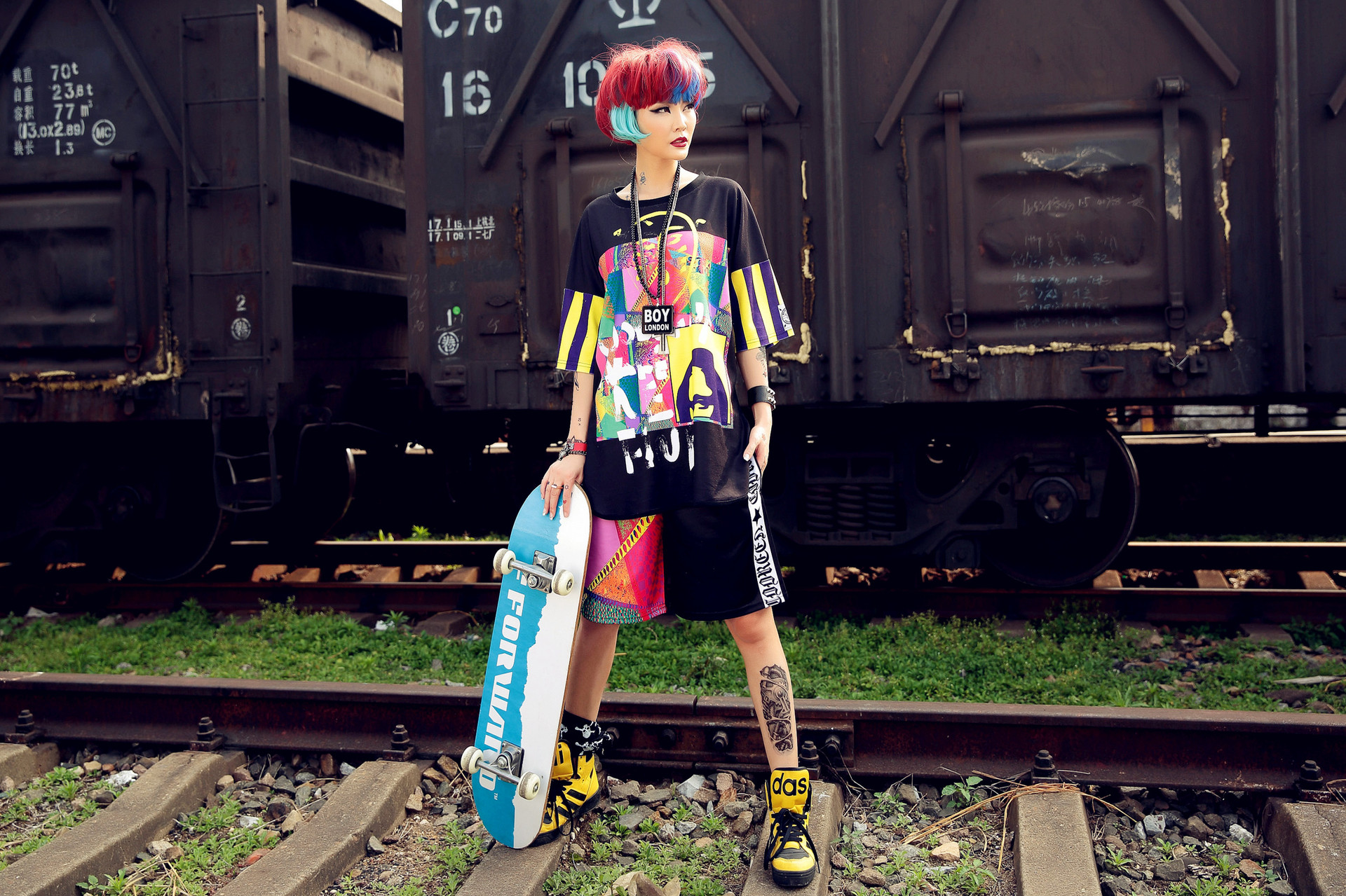 Popular elements: Boyfriend style, fluorescent color, contrast color, printing