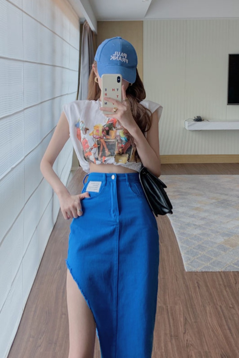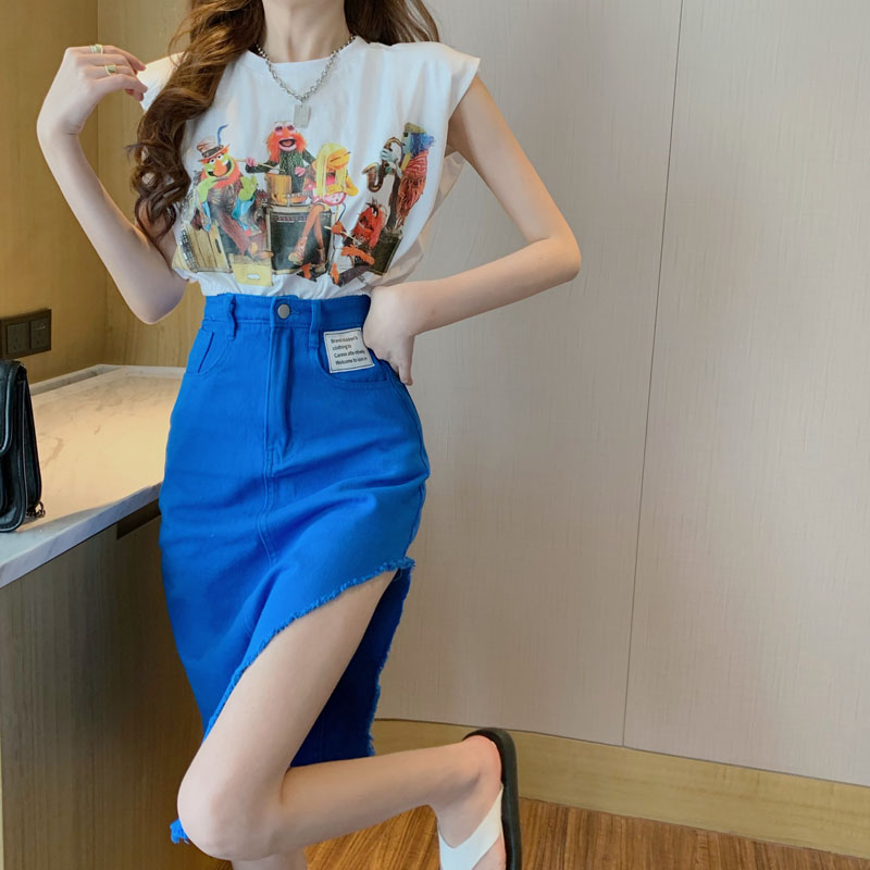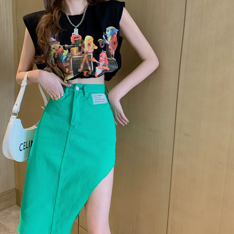Color classification: White sleeveless T-shirt 7955 Black sleeveless T-shirt 7955 Blue jeans 7956 Green jeans 7956