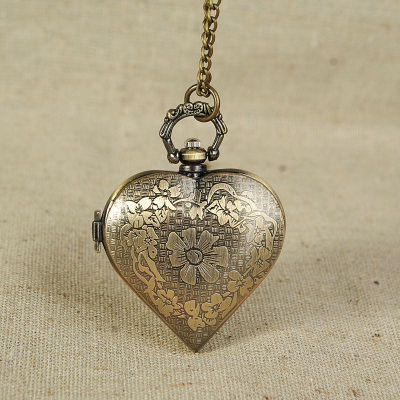 Vintage Peach Heart Hollow Pattern Pocket Watch Bronze Peach Heart Carved Hollow Classical Pocket Watch
