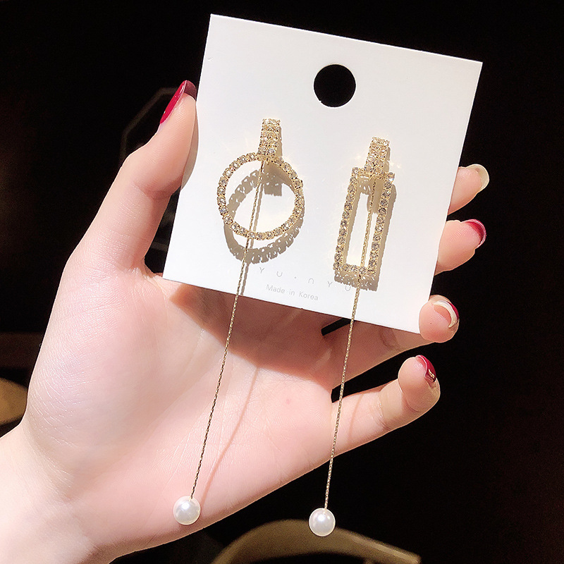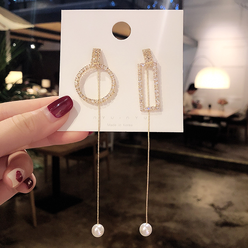 Women's Long Geometric Pearl Earrings