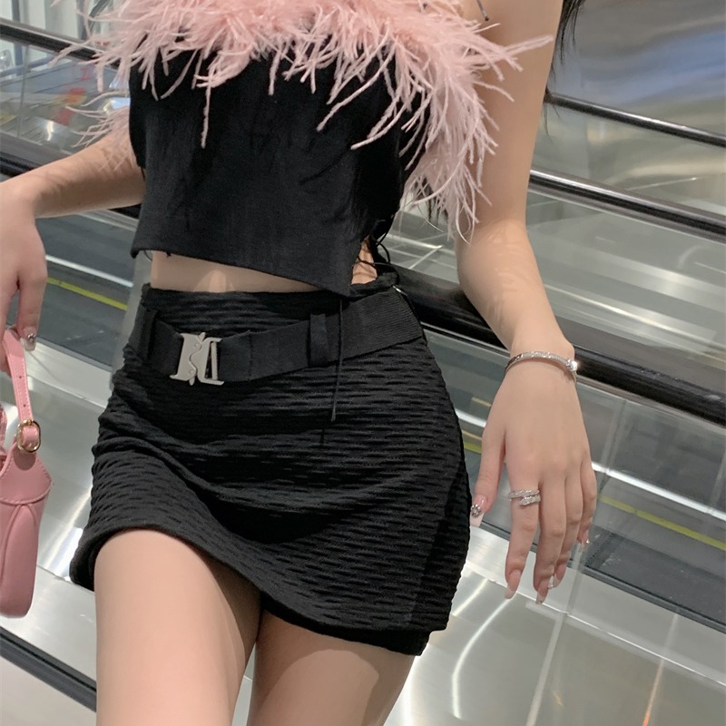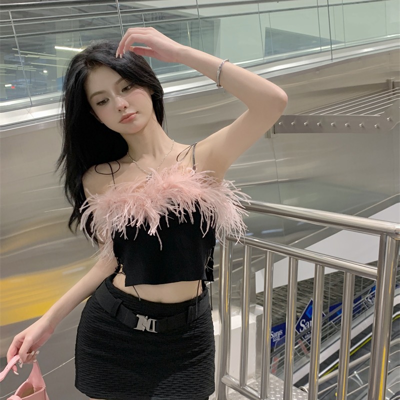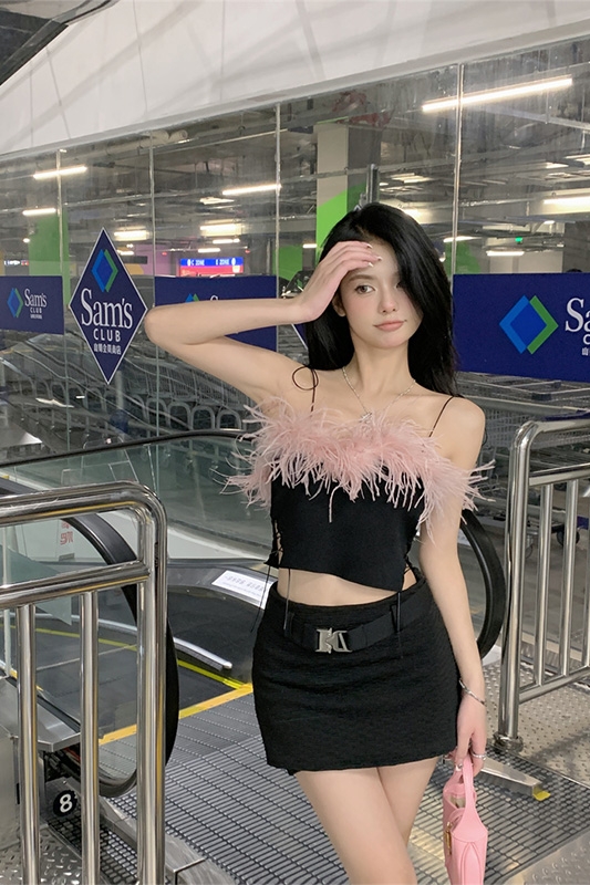 Color classification: Pink top, black skirt
