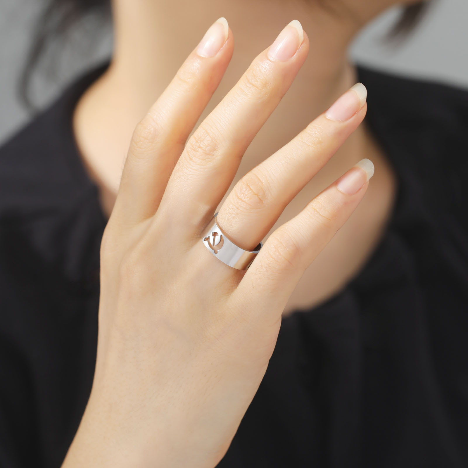 Product information:Treatment Process: Electroplating Color: steel, gold Applicable people: men Style: sickle hammer 8MM open titanium steel ring Material: Stainless steel Style: Personality