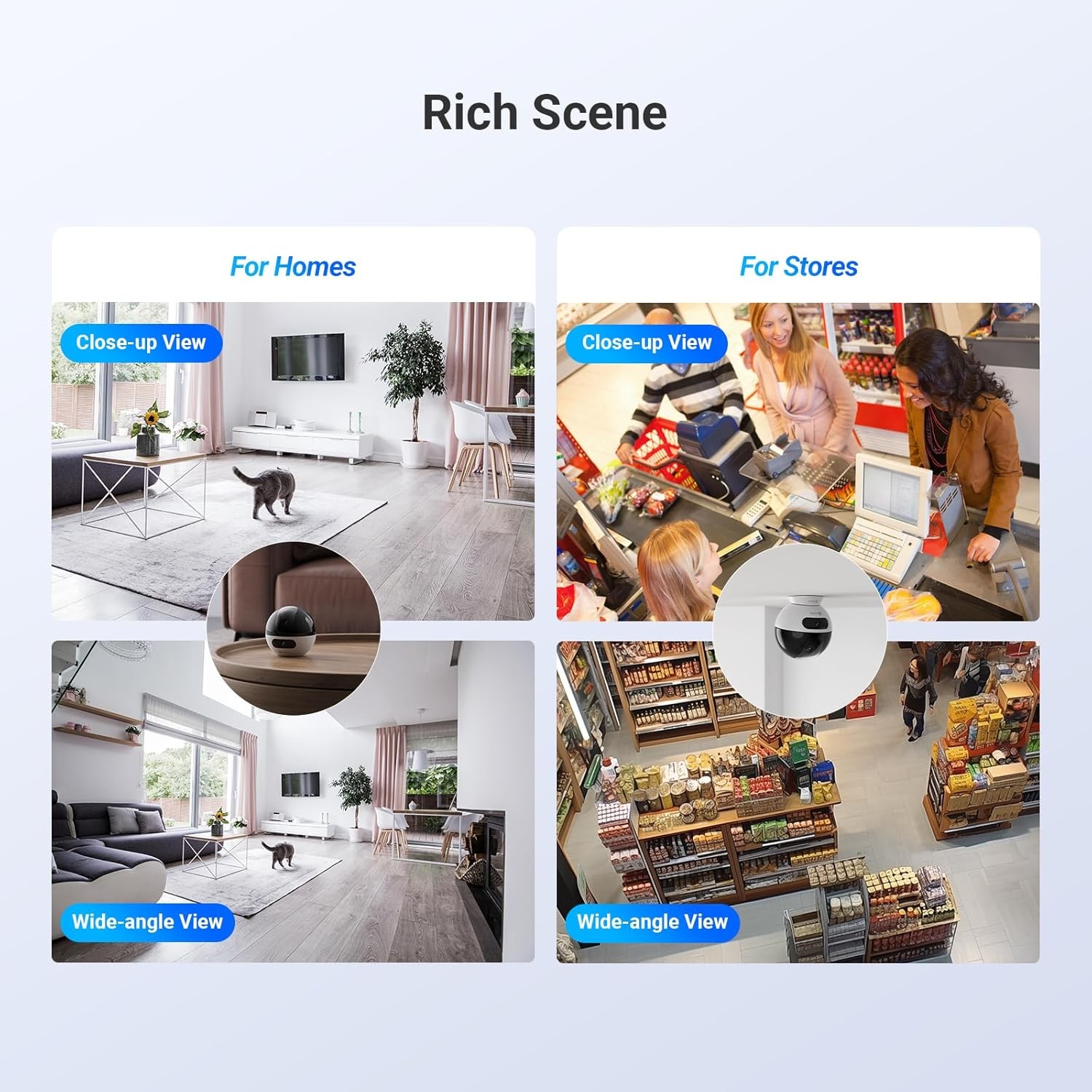 • ذكاء اصطناعي متطور: تمييز دقيق بين البشر والحيوانات الأليفة لتقليل الإنذارات الكاذبة، مع خاصية اكتشاف الضوضاء العالية.