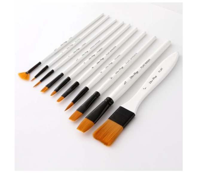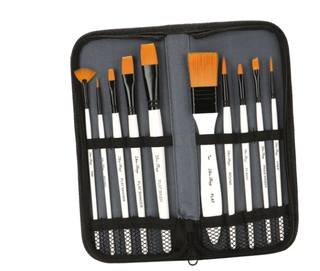 10Pcs Different Size Paint Brushes (Liner, Angle Shader, Filbert, Round, Flat, Flat Wash, Flat Shader Fan) Set Wpackage In Zipper Case, Portable And Keep Your Painting Brushes In Tidy
