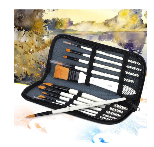 10 Pieces Paint Brushes With Zipper Storage Case