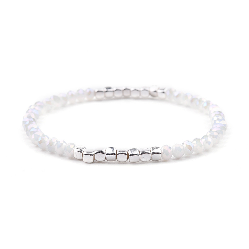 Series: Elastic crystal beaded braceletStyle: European and AmericanMaterial: CrystalType: BraceletStyle: Women'sCrystal type: white crystalModeling: geometricInlay material: not inlayPurity: pure naturalColor: BC226-21-AB white + silver