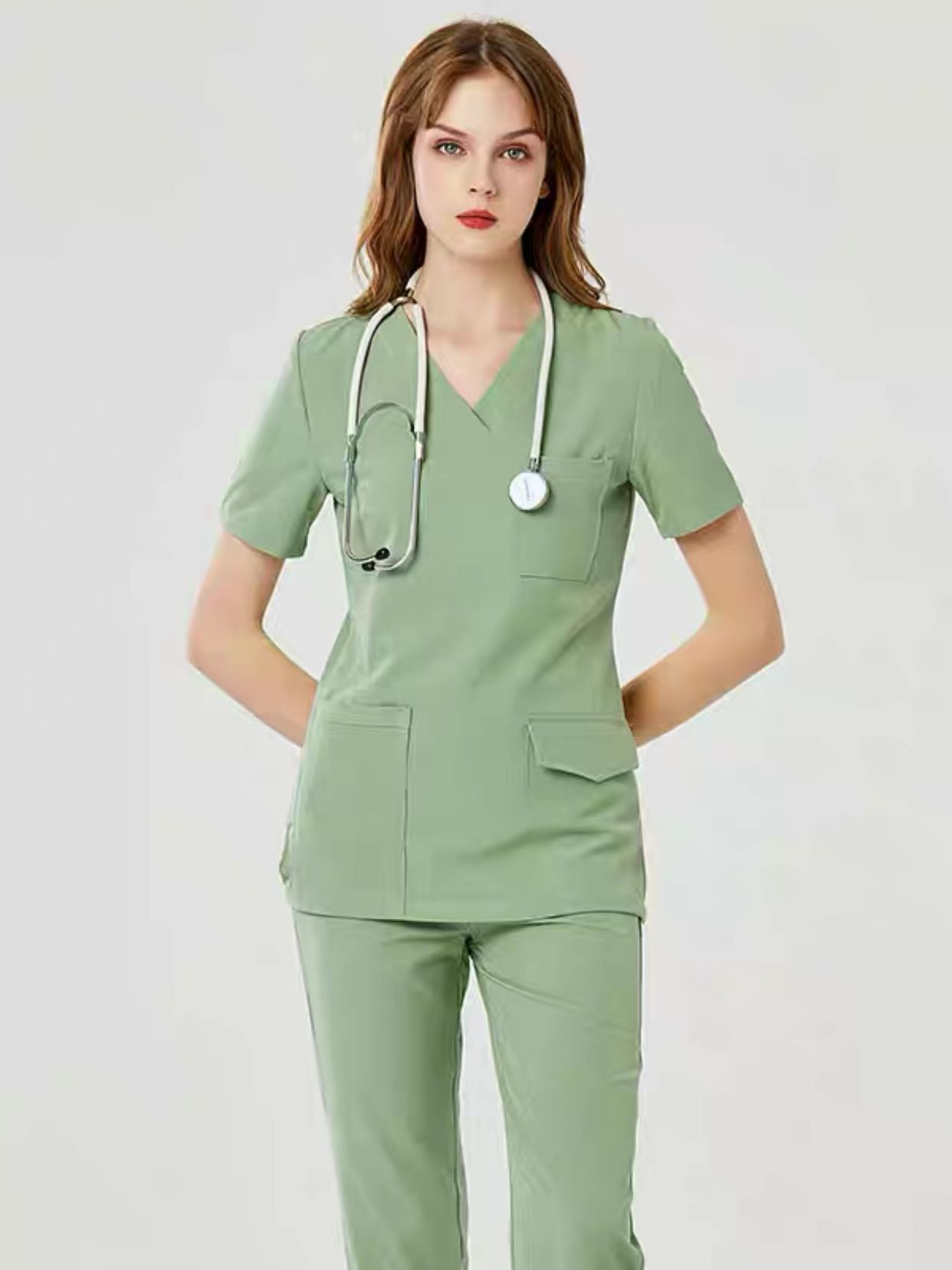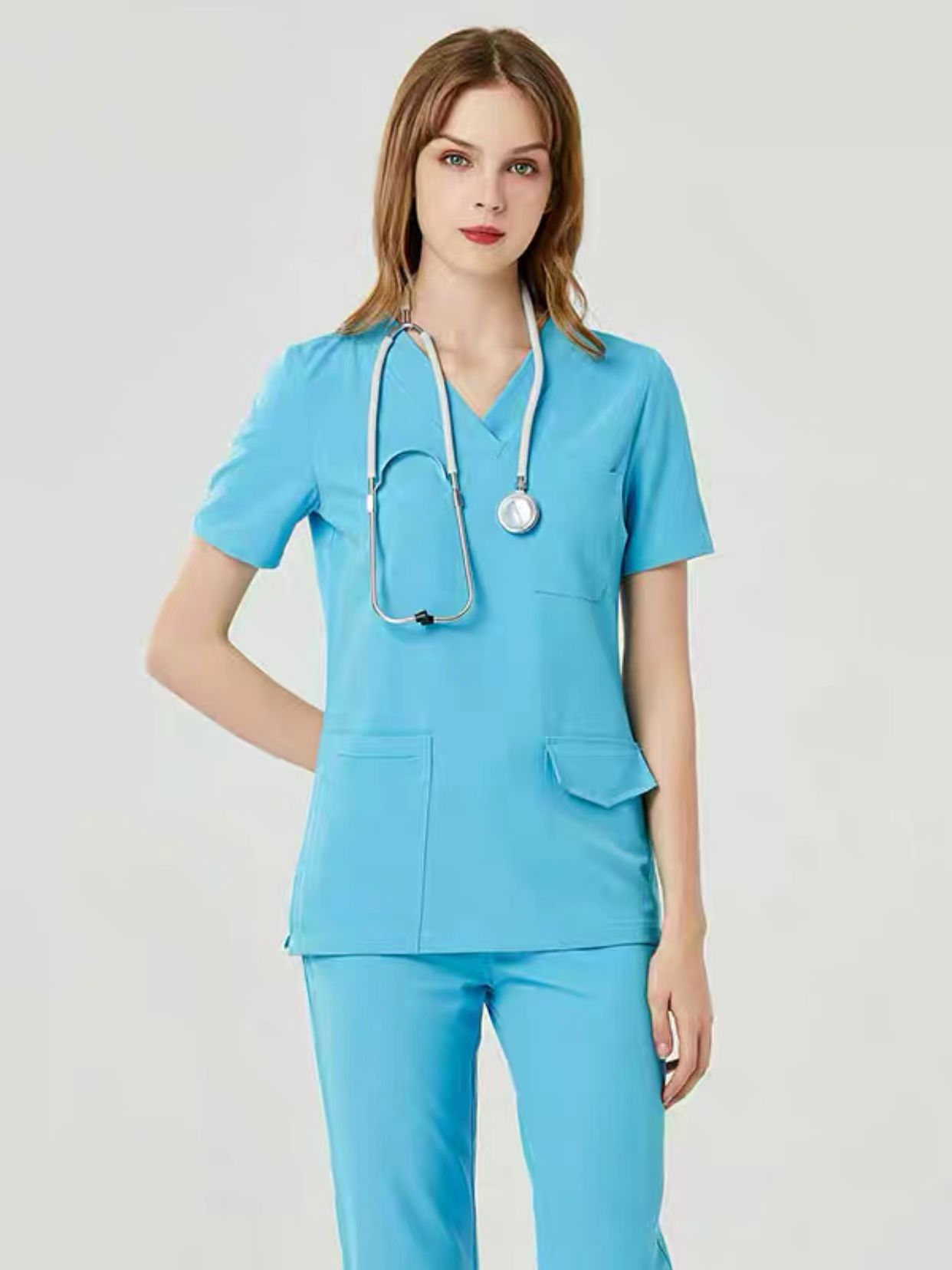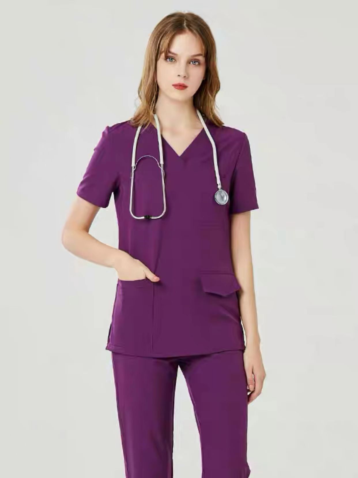 Colors: Navy blue short sleeve suit (plus cover), Peacock blue short sleeve suit (plus cover), gray short sleeve suit (plus cover), Matcha green short sleeve suit (plus cover), Dark Purple short sleeve suit (plus cover), water blue short sleeve suit (plus cover), navy blue long sleeve suit (plus cover), peacock blue long sleeve suit (plus cover)