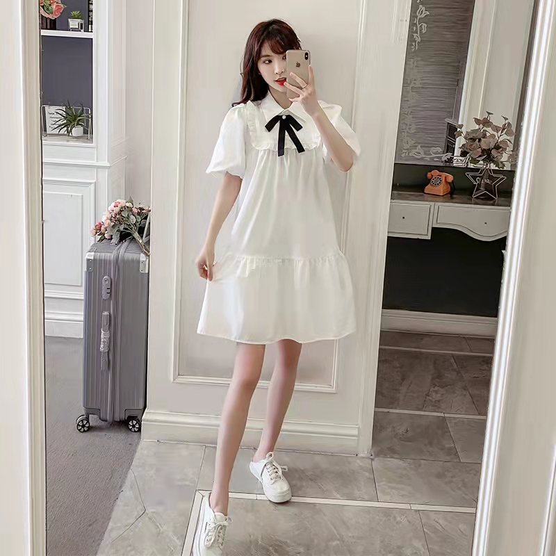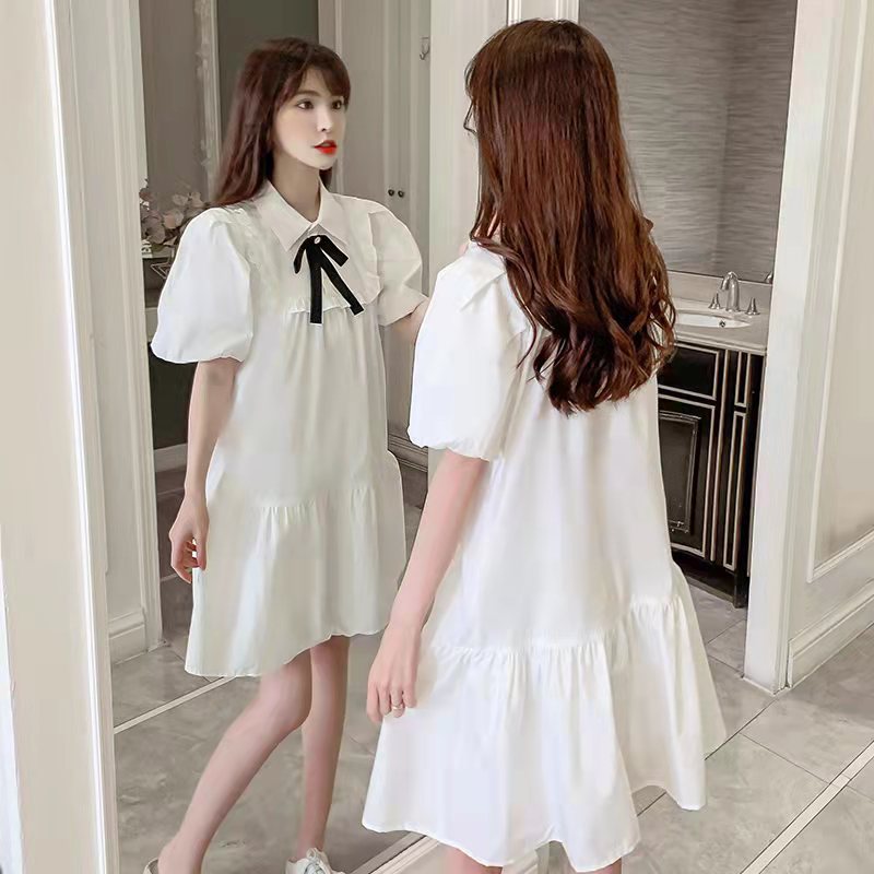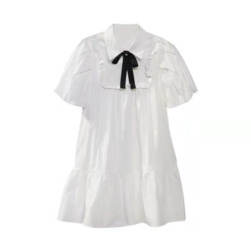 Product information :Skirt length: short skirtSkirt type: pleated skirtCollar type: lapel/POLO collarSleeve type: conventional sleeveSleeve length: short sleeveColor: WhiteSize Information:Size: S,M,L,XLPacking list:Dress *1