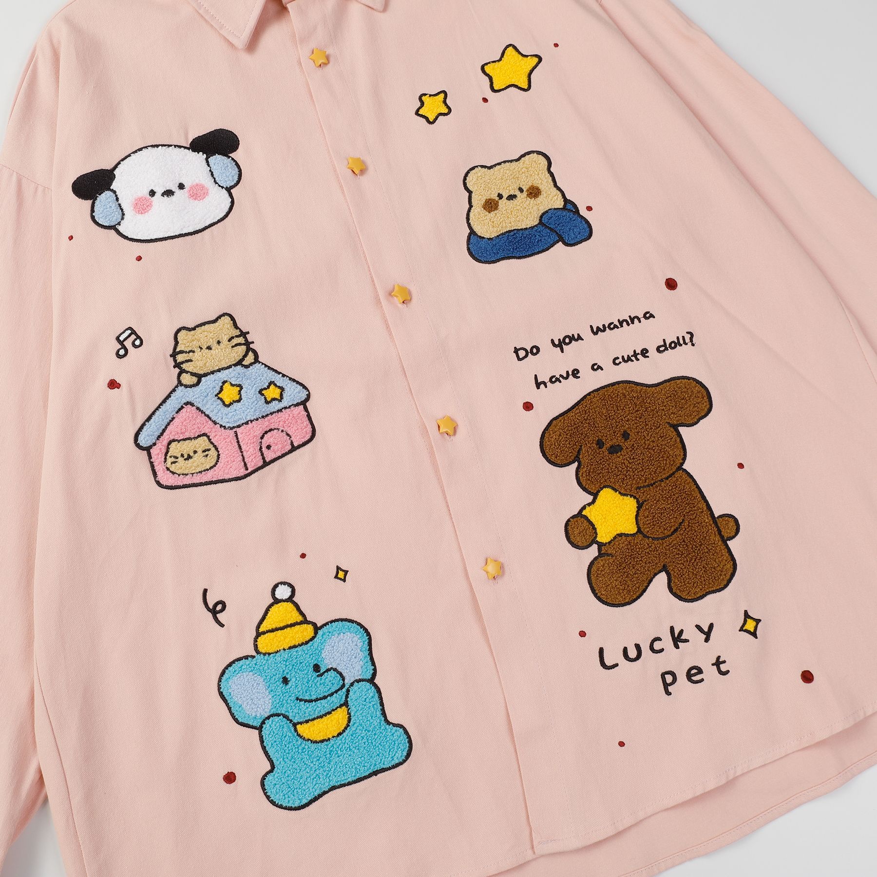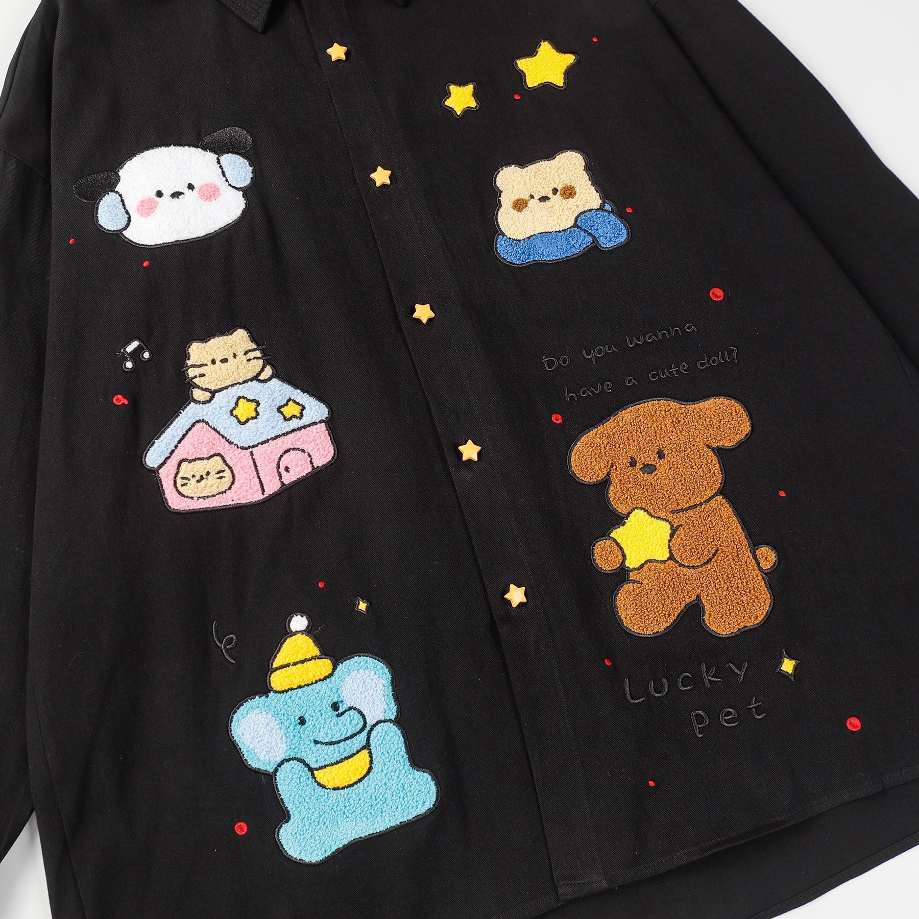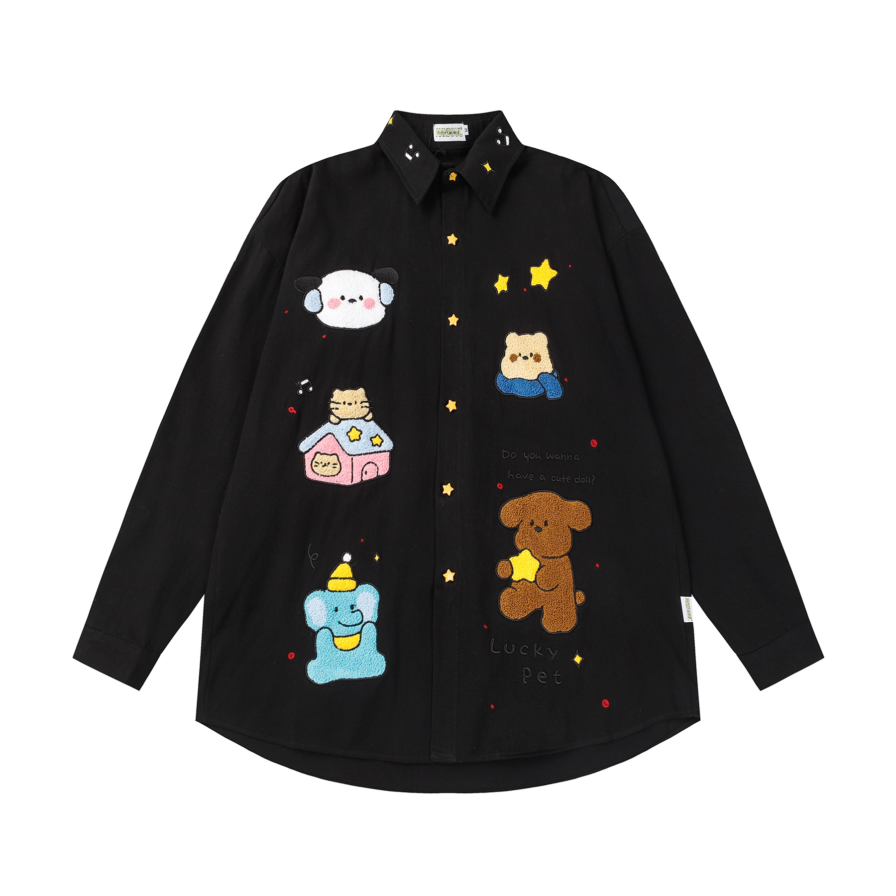 Loose American Embroidery Cartoon Long Sleeve Shirt