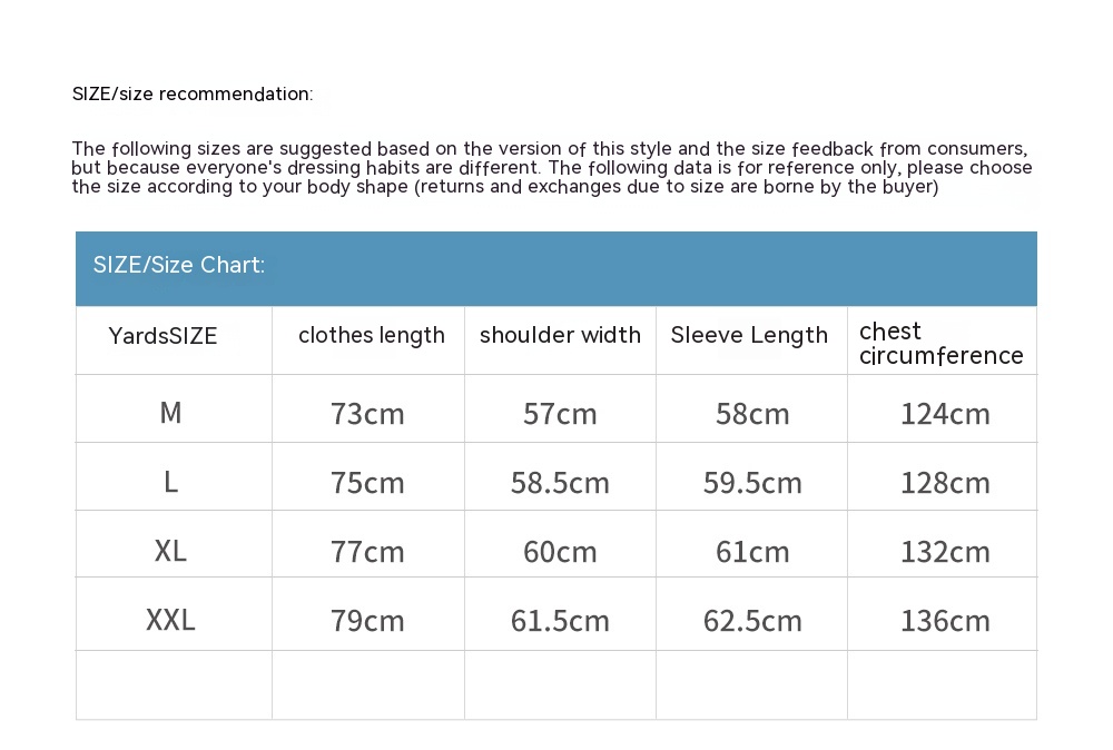 1. Asian sizes are 1 to 2 sizes smaller than European and American people. Choose the larger size if your size between two sizes. Please allow 2-3cm differences due to manual measurement. 2. Please check the size chart carefully before you buy the item, if you don't know how to choose size, please contact our customer service. 3.As you know, the different computers display colors differently, the color of the actual item may vary slightly from the following images.