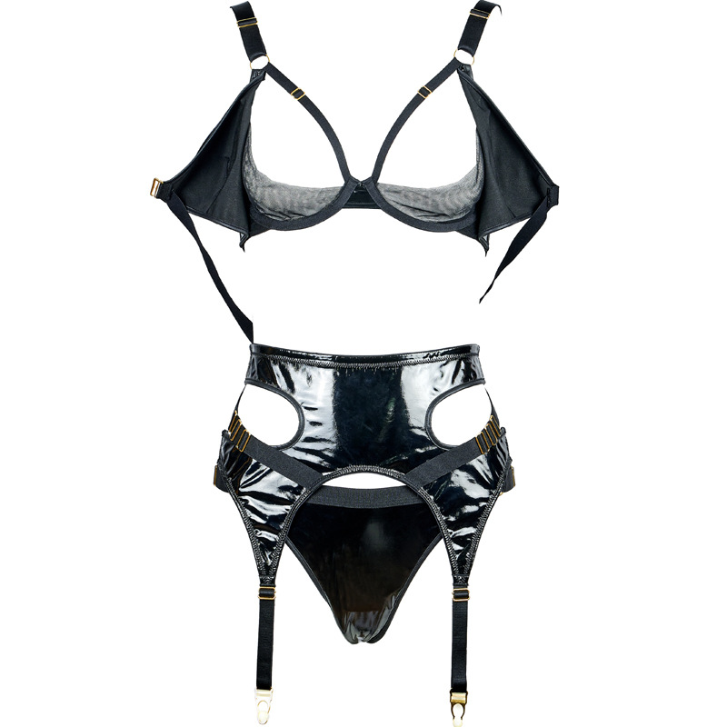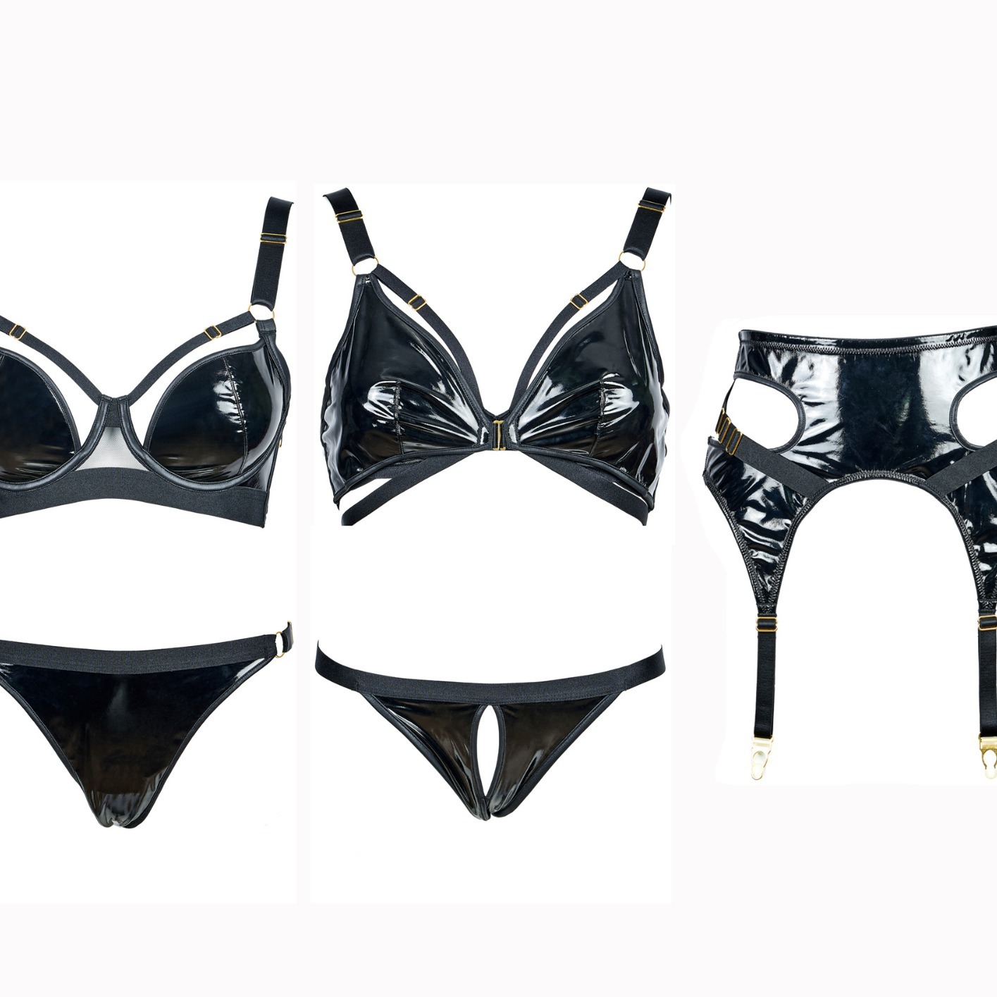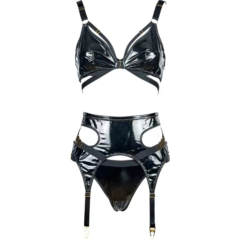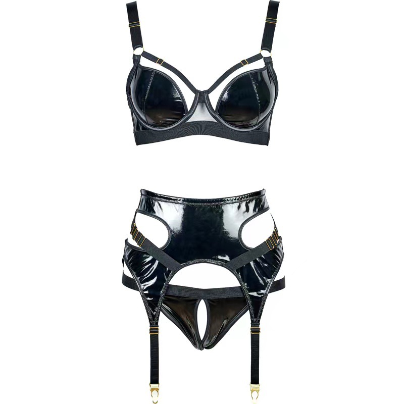 Product information:Color: front button thin bra, sponge bra, T-back, open briefs, garterSize: 70B/C,75B/C,80B/C,85B/C,70B,75B,80B,85B,S,M,L,XLApplicable Gender: FemaleStyle: tightsMaterial: Leather