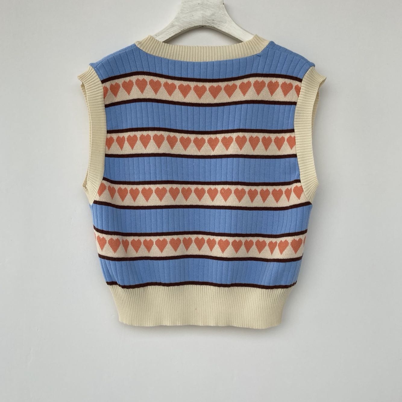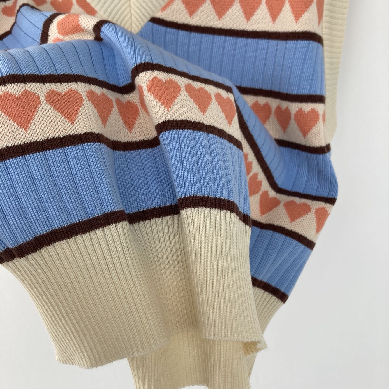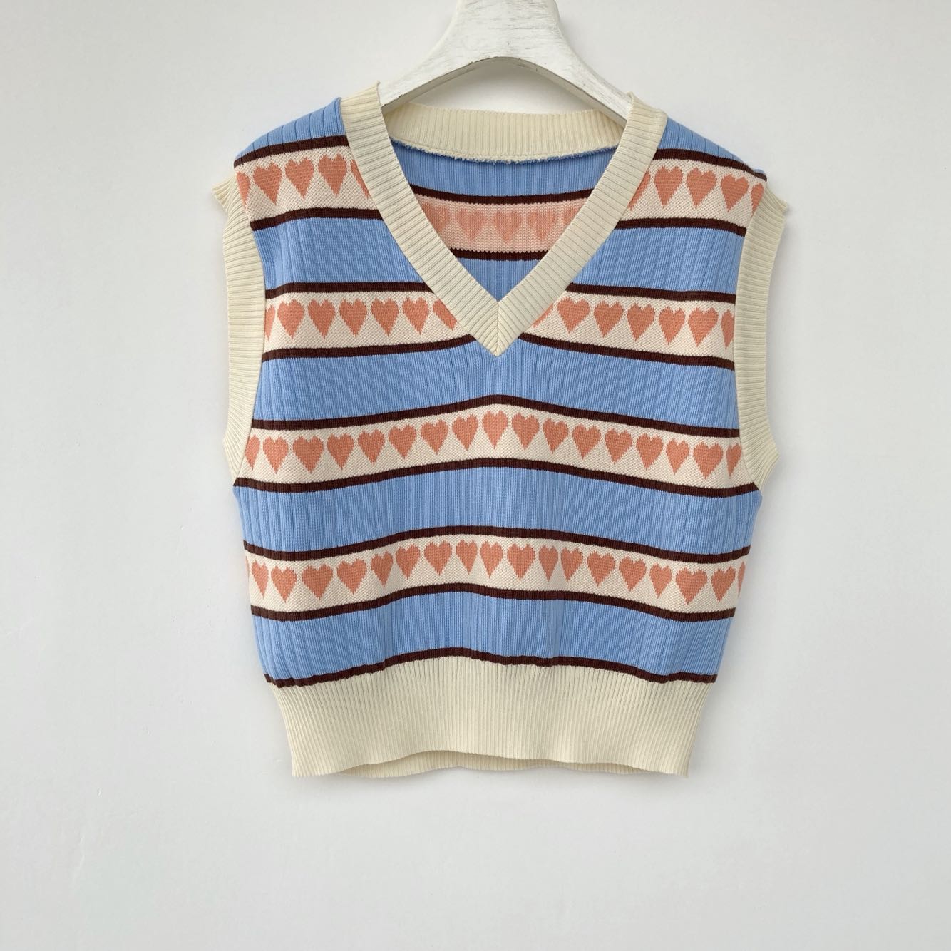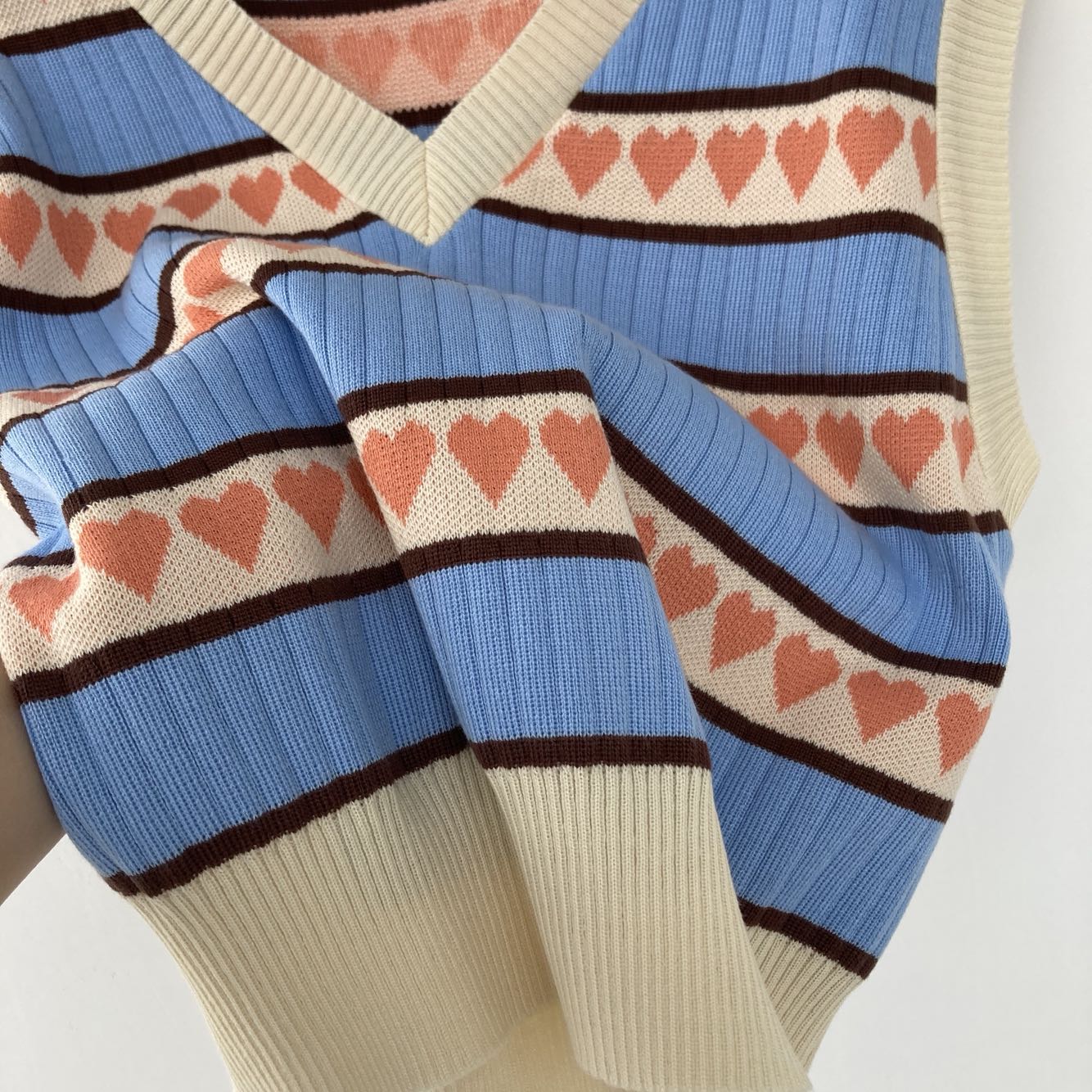 Type: VestApplicable gender: femaleFabric: AcrylicColor classification: blue strip pink heartIngredient content: 71% (inclusive)-80% (inclusive)