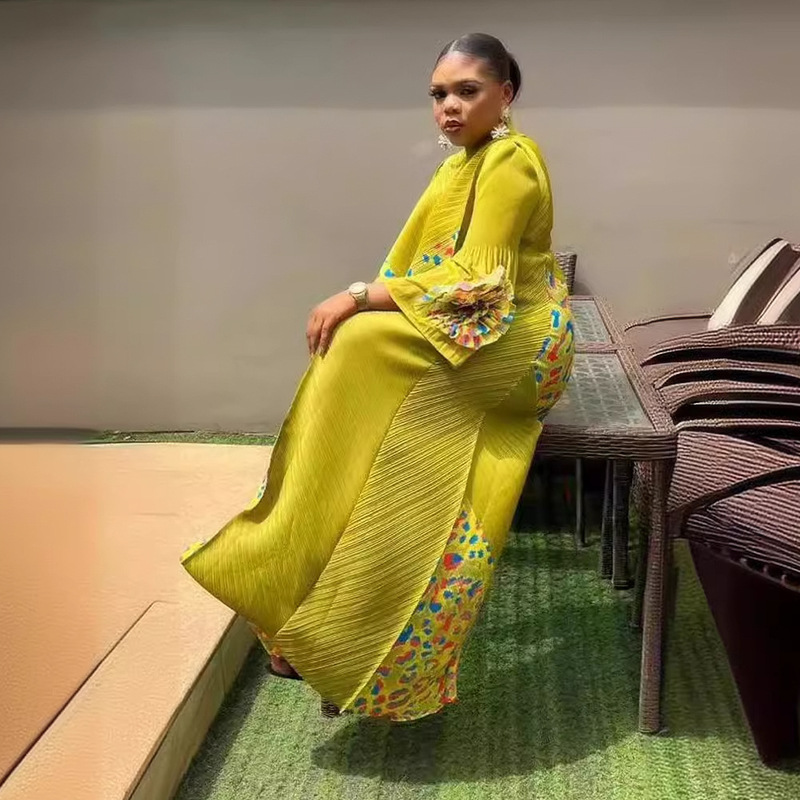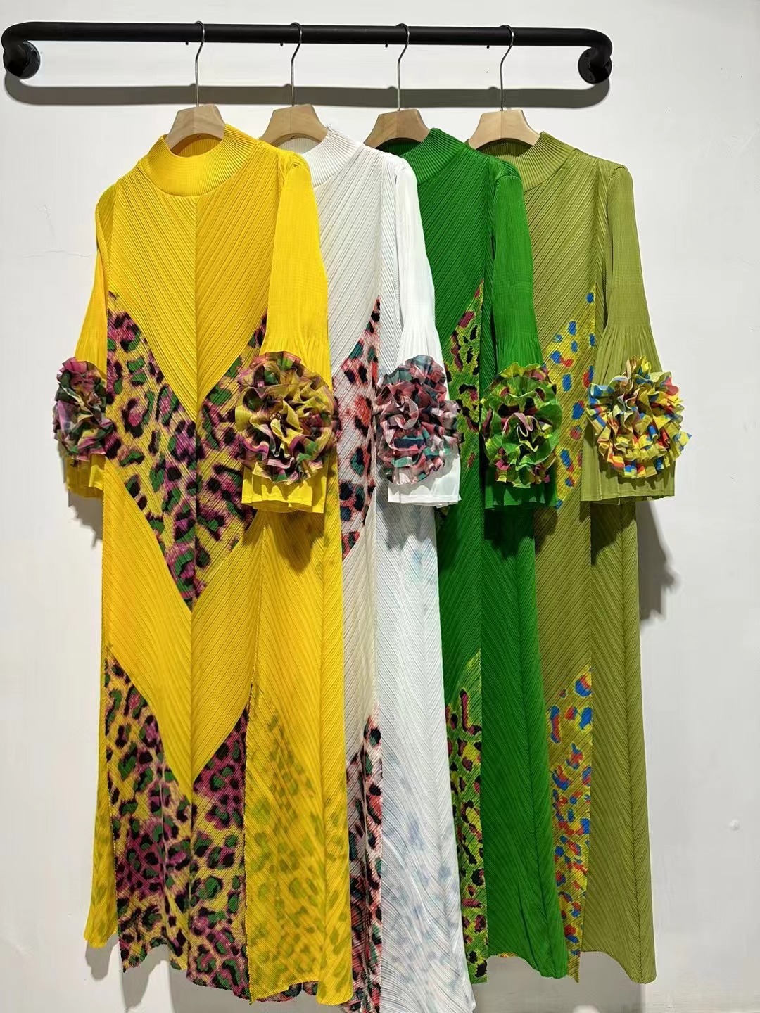 Product information: Color: yellow pleated dress, Green fold dress, white fold dress, matcha green fold dress Size: free size Main fabric composition: Polyester Fiber