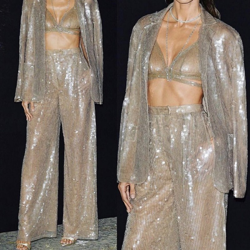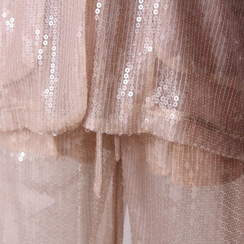 Color classification: Transparent sequined gold base cloth trousers, one piece, transparent sequined gold base cloth top