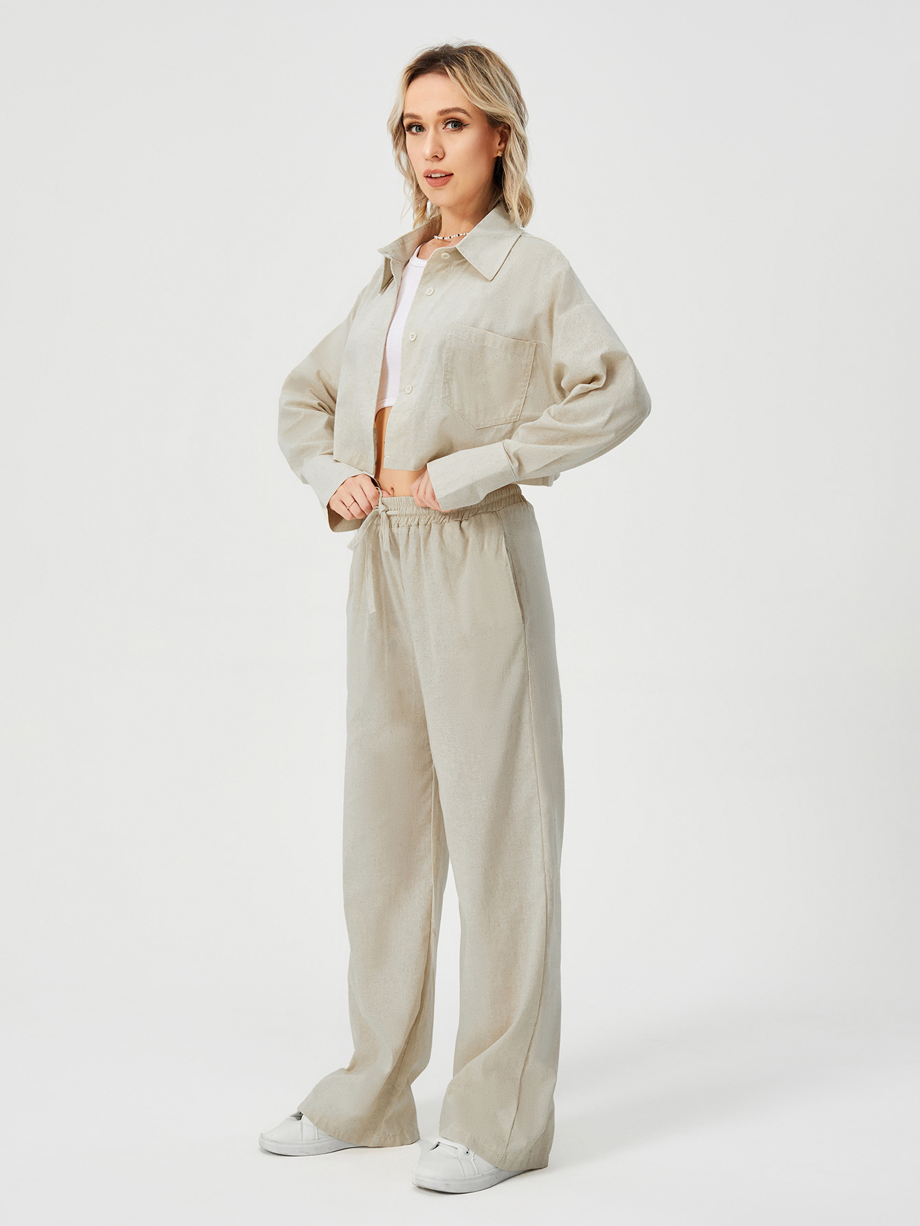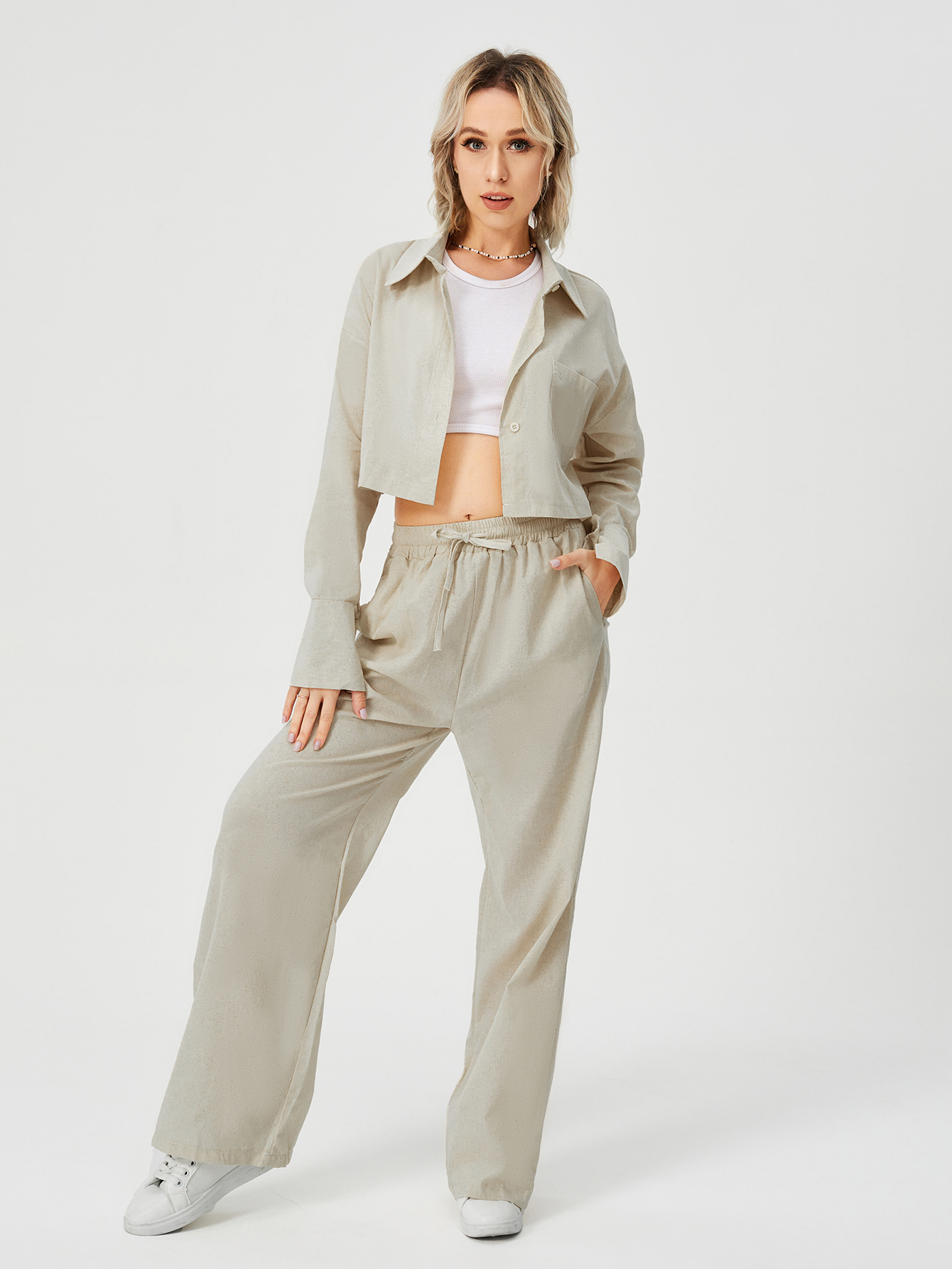 Women Two Piece Outfits For Women Long Sleeve Button Down Wide Leg Loungewear Pajama Set