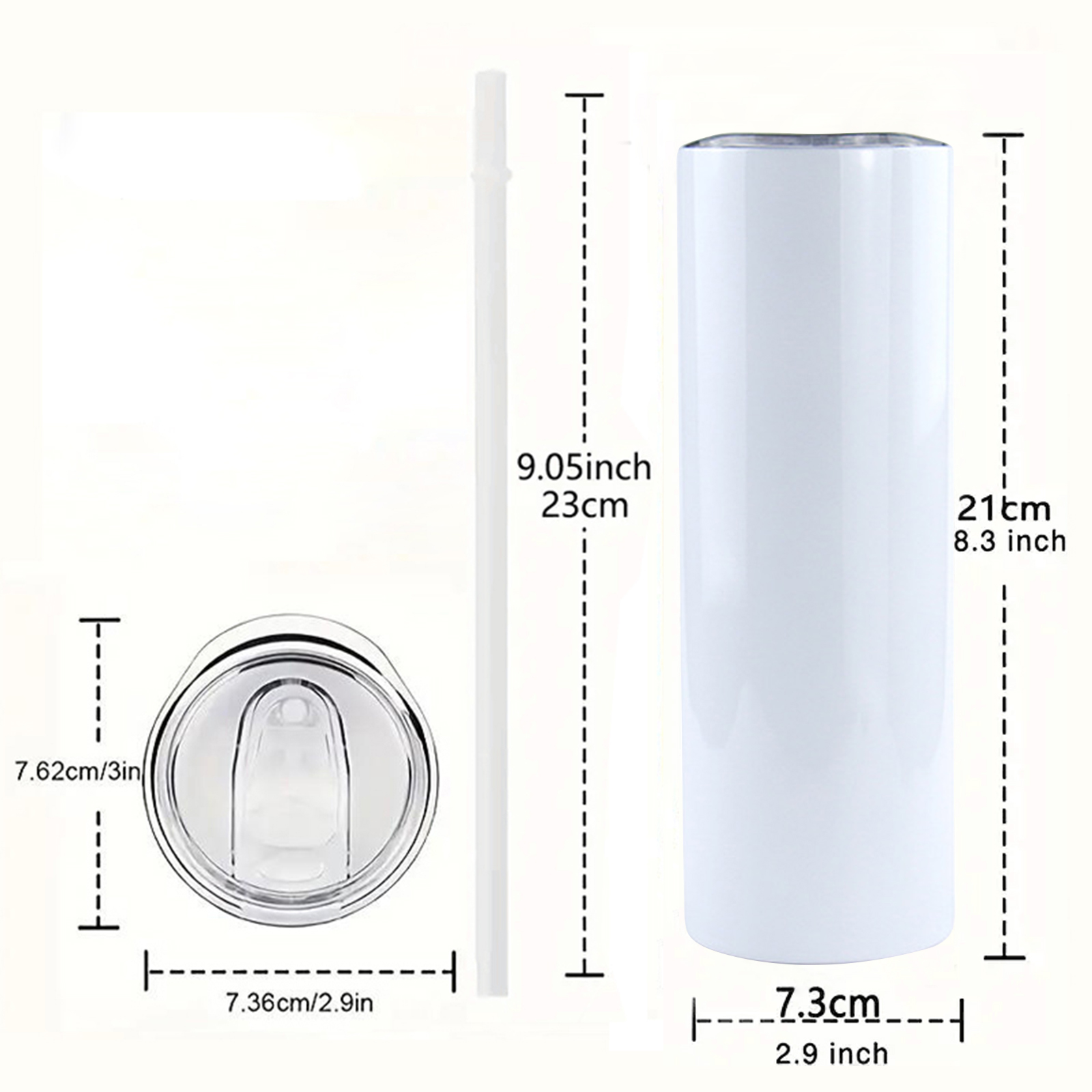 20oz Sublimation Straight Tumbler Stainless Steel Skinny Tumbler With Straw Lid Portable T Hermos Vacuum Anti-fall T Hermos Cup