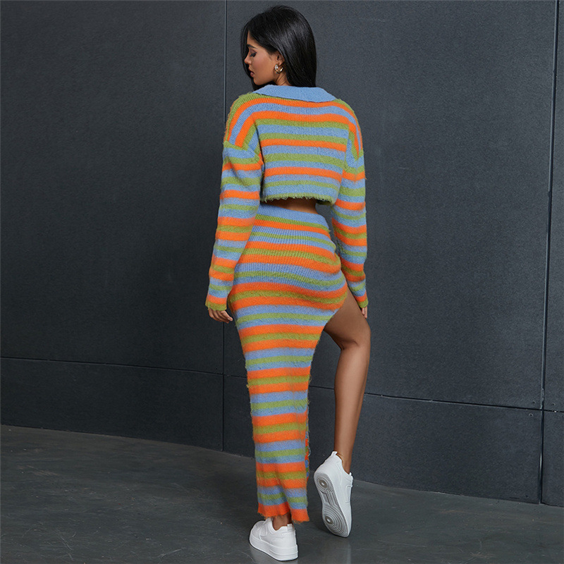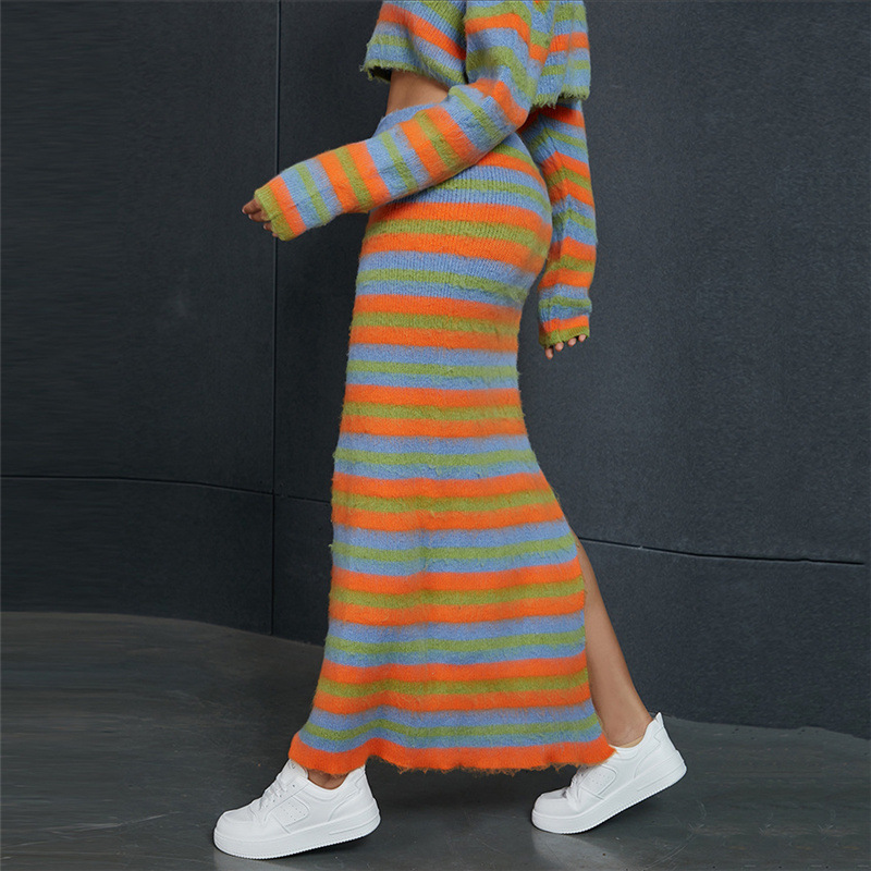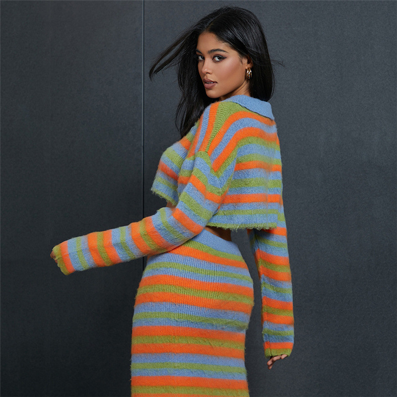 Product information: Color: stripes (top W23C32336), stripes (skirt W23J34353), stripes (suit W23S34354) Size: S,M,L Style type: Japanese and Korean casual Style: Cardigan Fabric name: Polyester Sleeve length: long sleeve Style: casual style